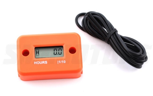 Полностью водонепроницаемый счетчик фиксируется при помощи винтов или хомутов стяжки в удобном для снятия показаний месте. Конец комплектного кабеля несколько раз (4-5 витков) наматывается вокруг провода свечи зажигания и закрепляется стяжкой или любым другим способом. Другой конец кабеля закрепляется в пазу задней панели прибора. LCD-дисплей счетчика отображает часы работы двигателя накопительным методом с момента установки прибора. Частота обновления показаний – раз в шесть минут (1/10 часа). Счетчик нельзя обнулить, максимальная разрядность дисплея составляет 99999 часов.
