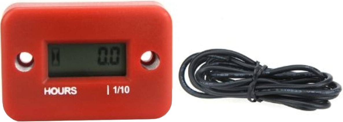 Полностью водонепроницаемый счетчик фиксируется при помощи винтов или хомутов стяжки в удобном для снятия показаний месте. Конец комплектного кабеля несколько раз (4-5 витков) наматывается вокруг провода свечи зажигания и закрепляется стяжкой или любым другим способом. Другой конец кабеля закрепляется в пазу задней панели прибора. LCD-дисплей счетчика отображает часы работы двигателя накопительным методом с момента установки прибора. Частота обновления показаний – раз в шесть минут (1/10 часа). Счетчик нельзя обнулить, максимальная разрядность дисплея составляет 99999 часов.
