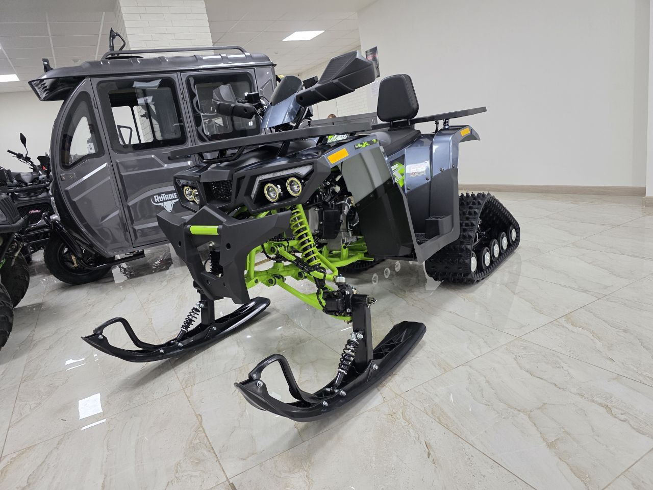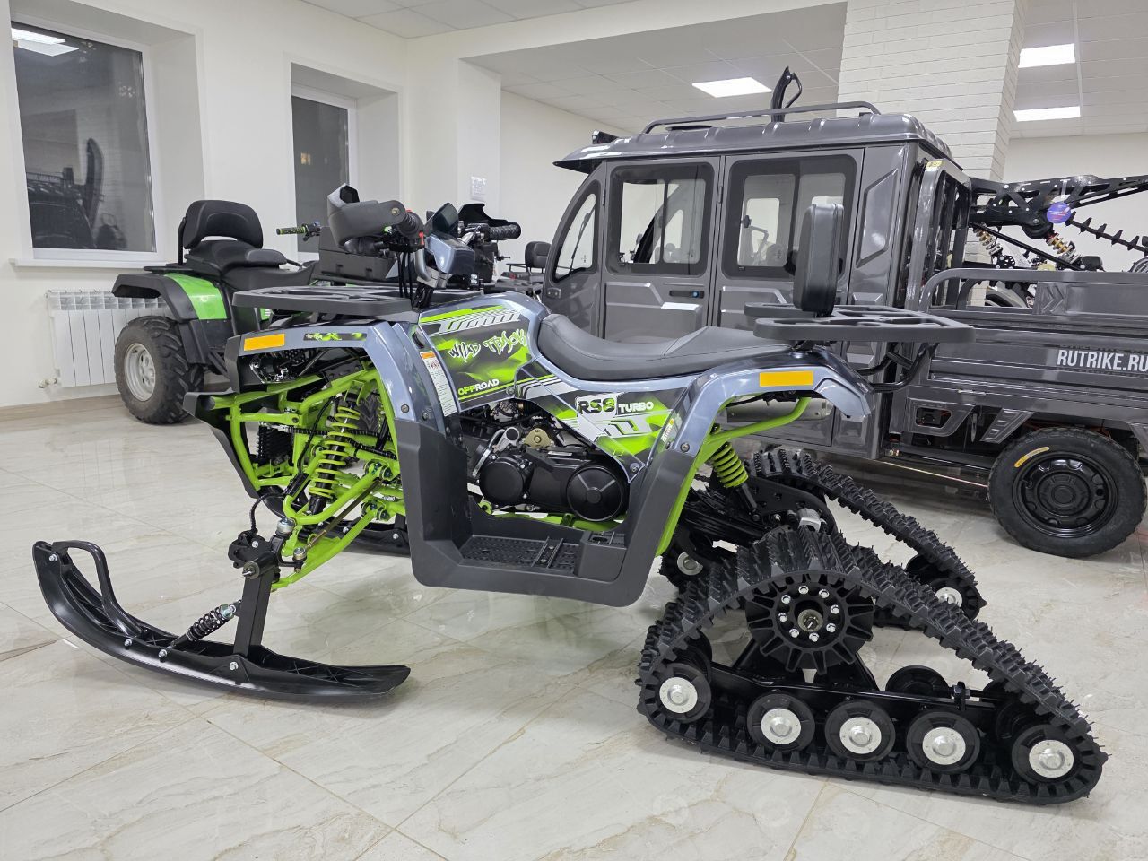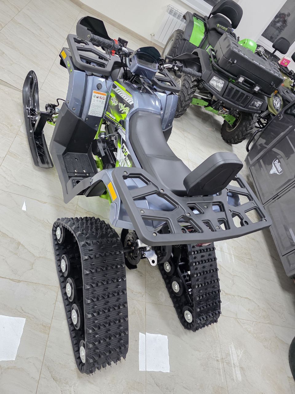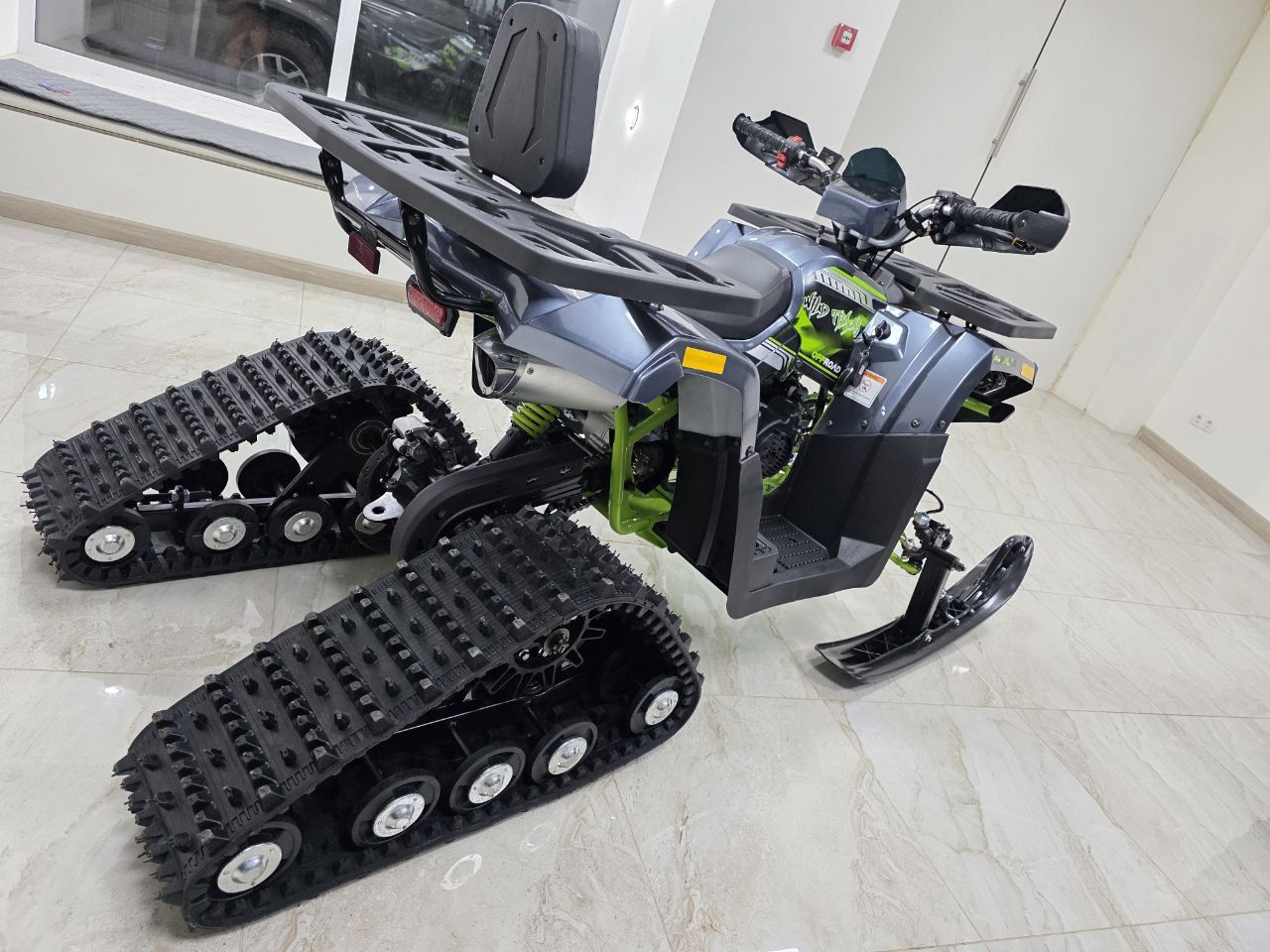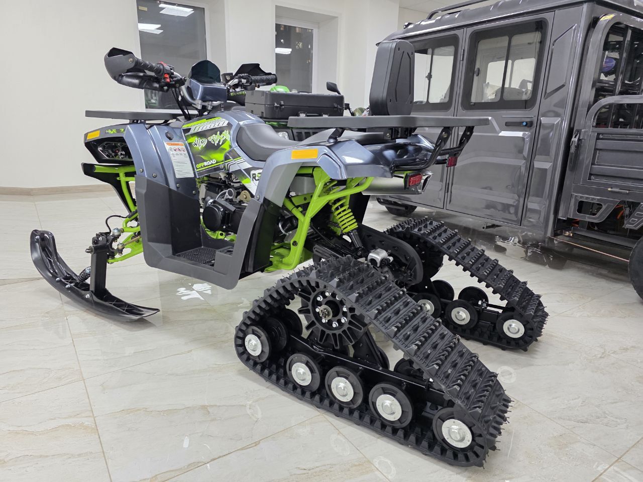 Комплектация: В комплект входят гусеницы, лыжи и необходимые крепления.