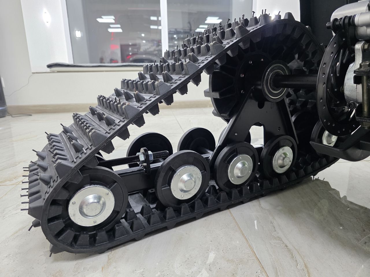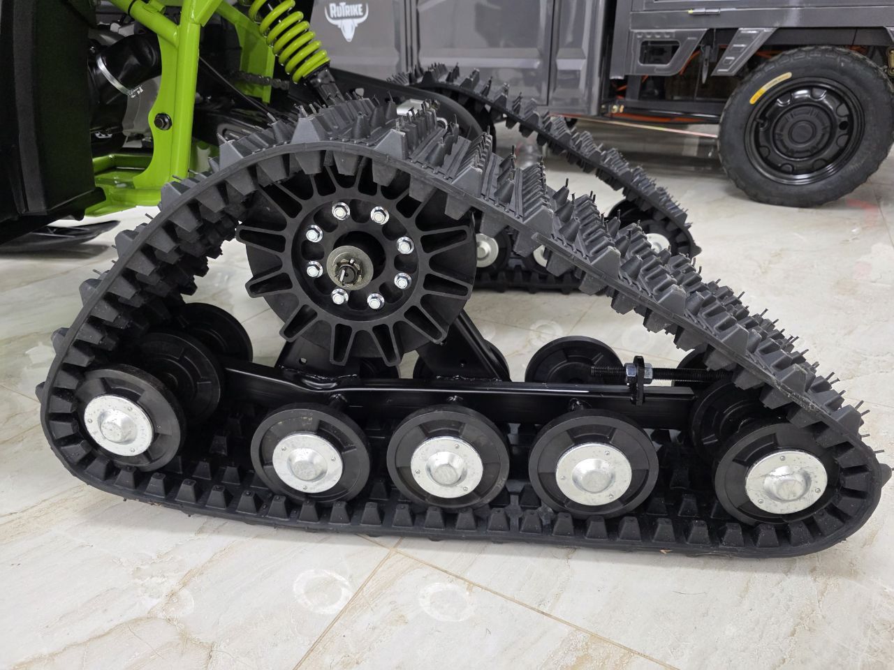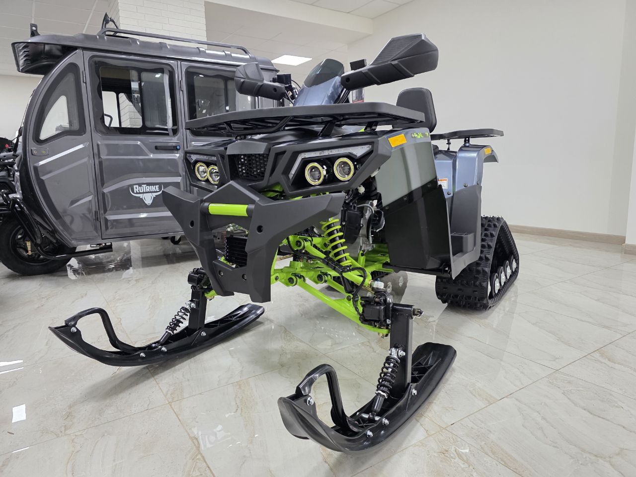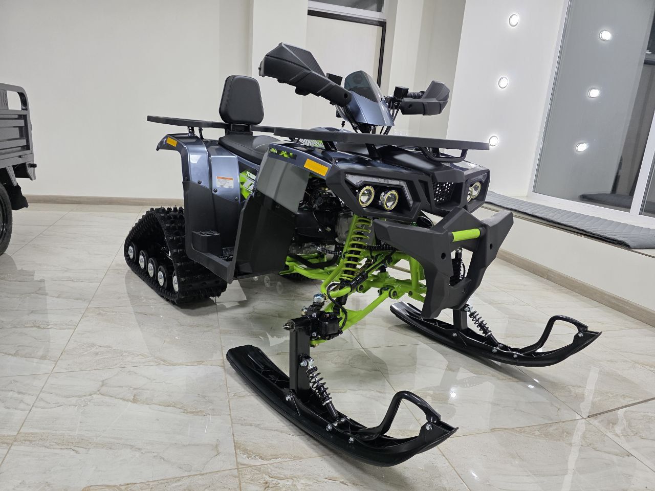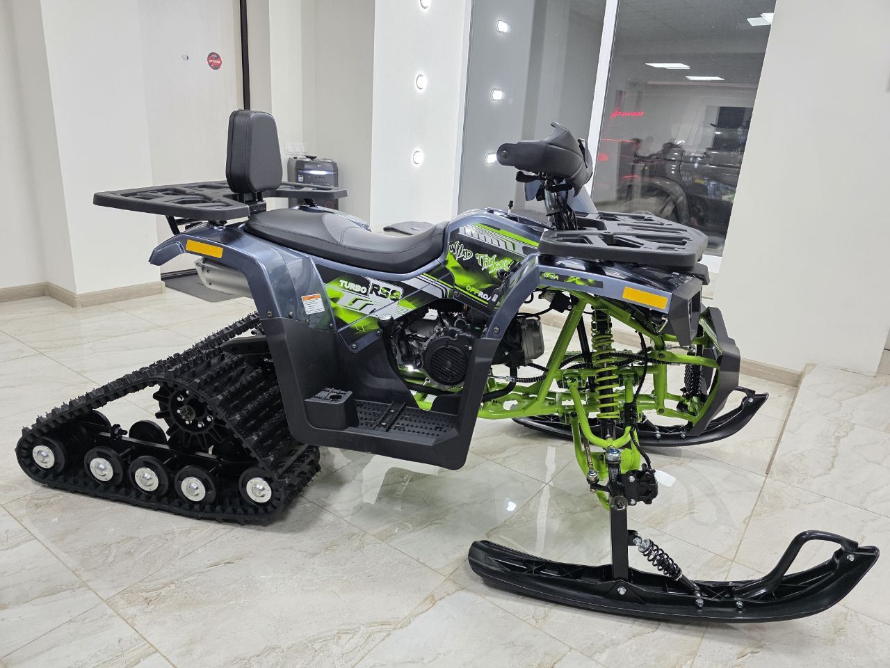 Комплектация: В комплект входят гусеницы, лыжи и необходимые крепления.