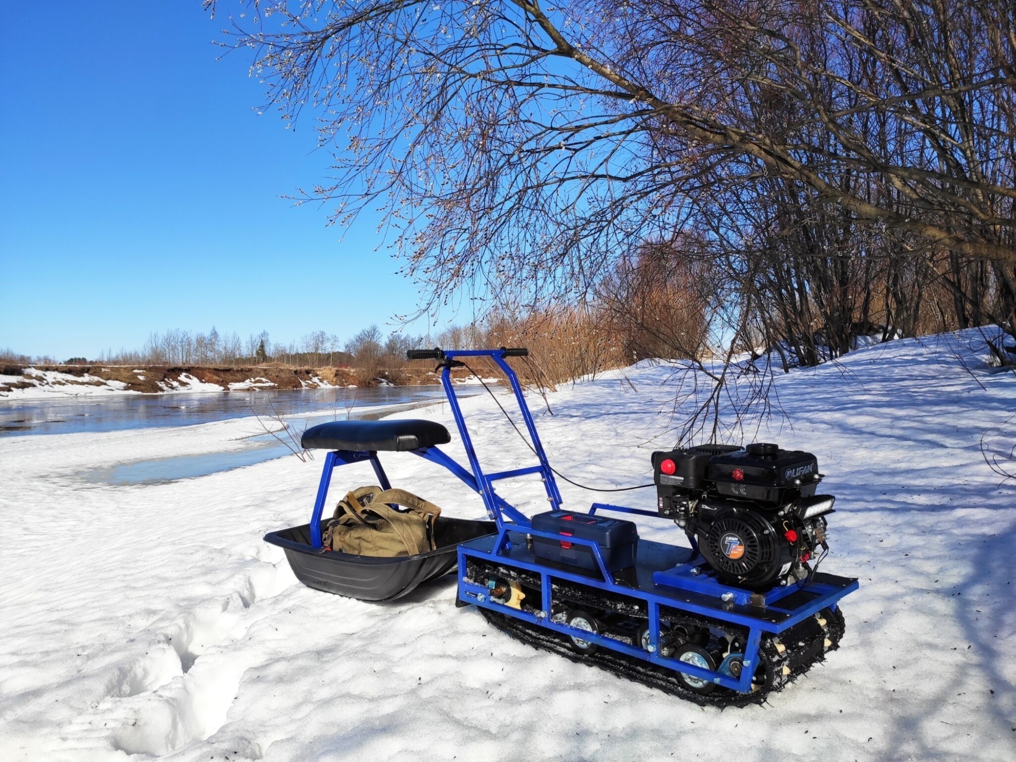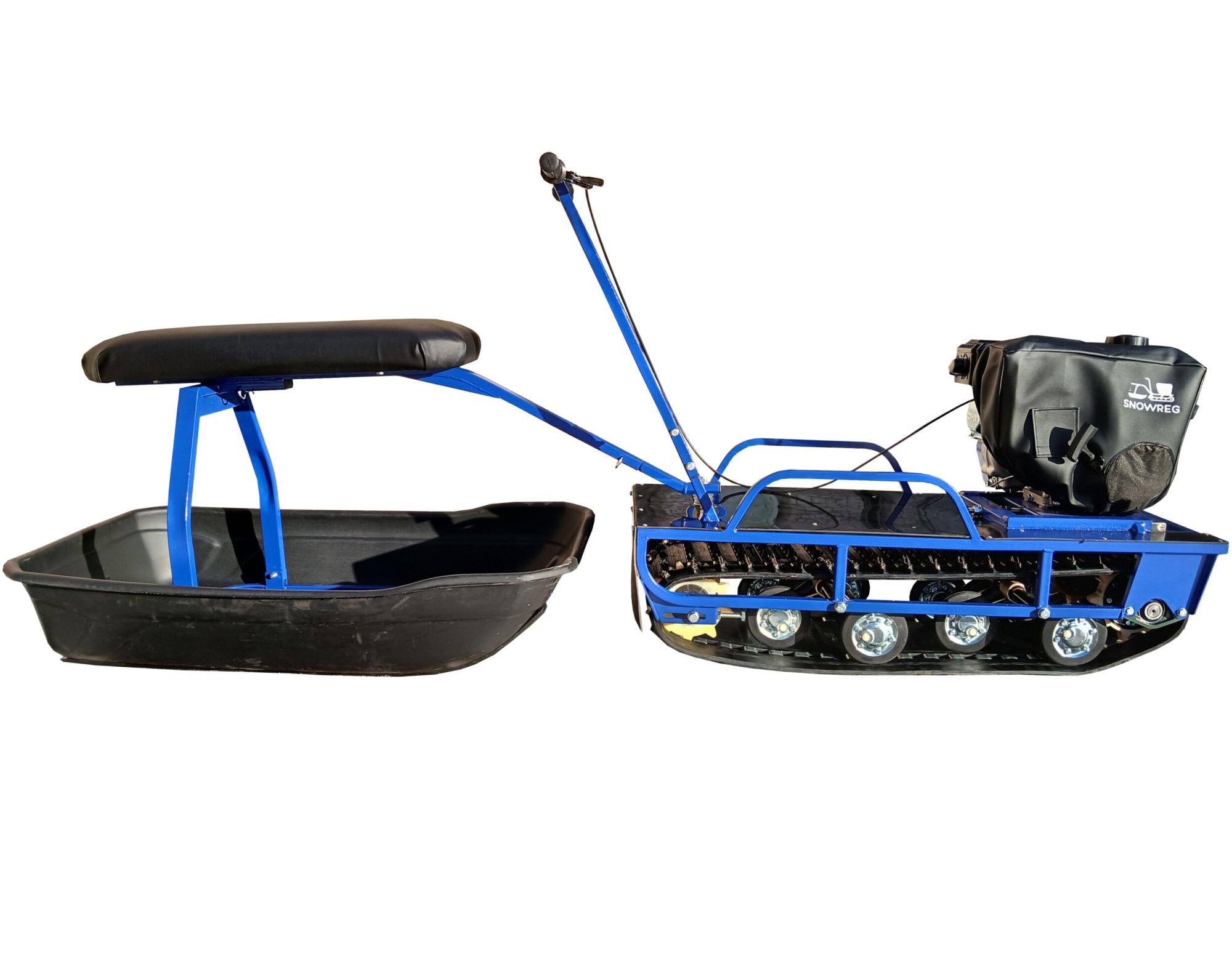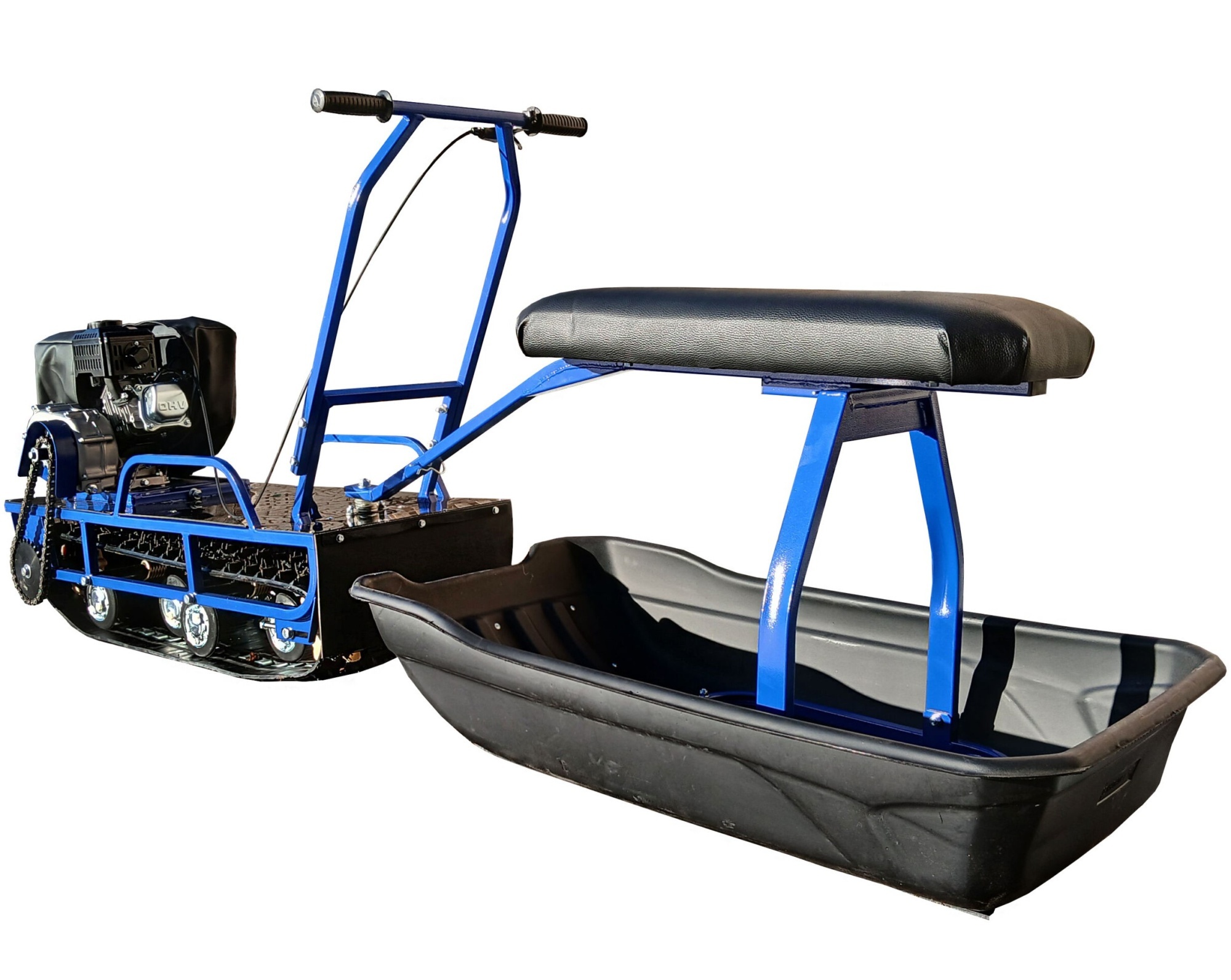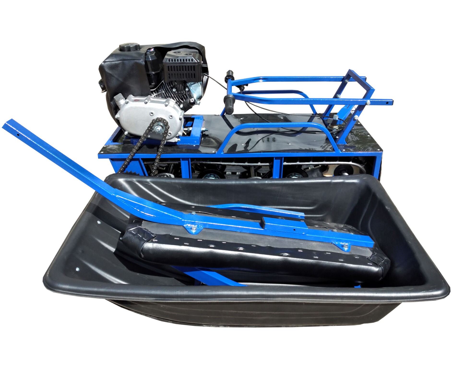 - В комплекте сани с накладками, сиденье, чехол на двигатель;