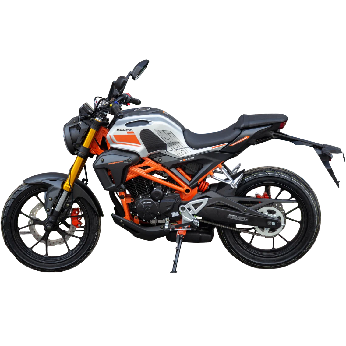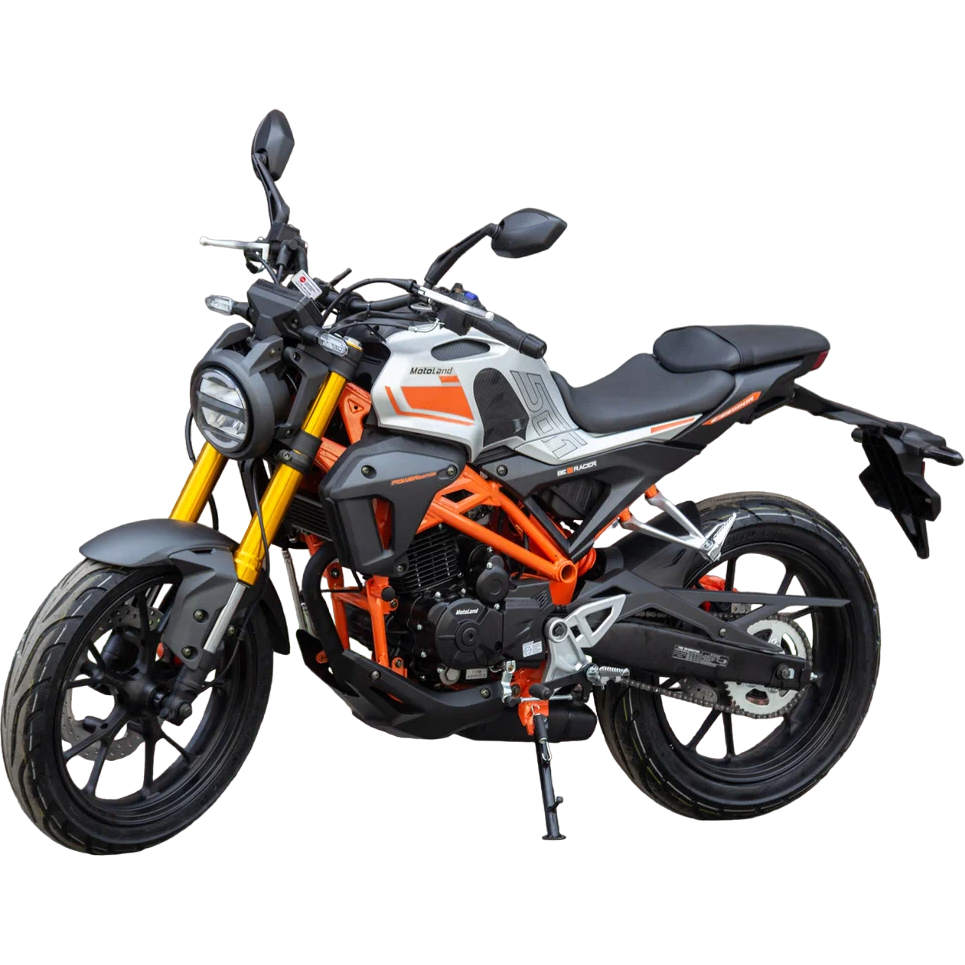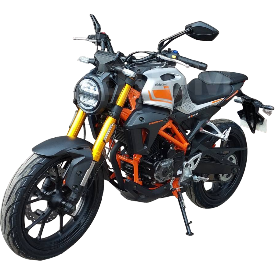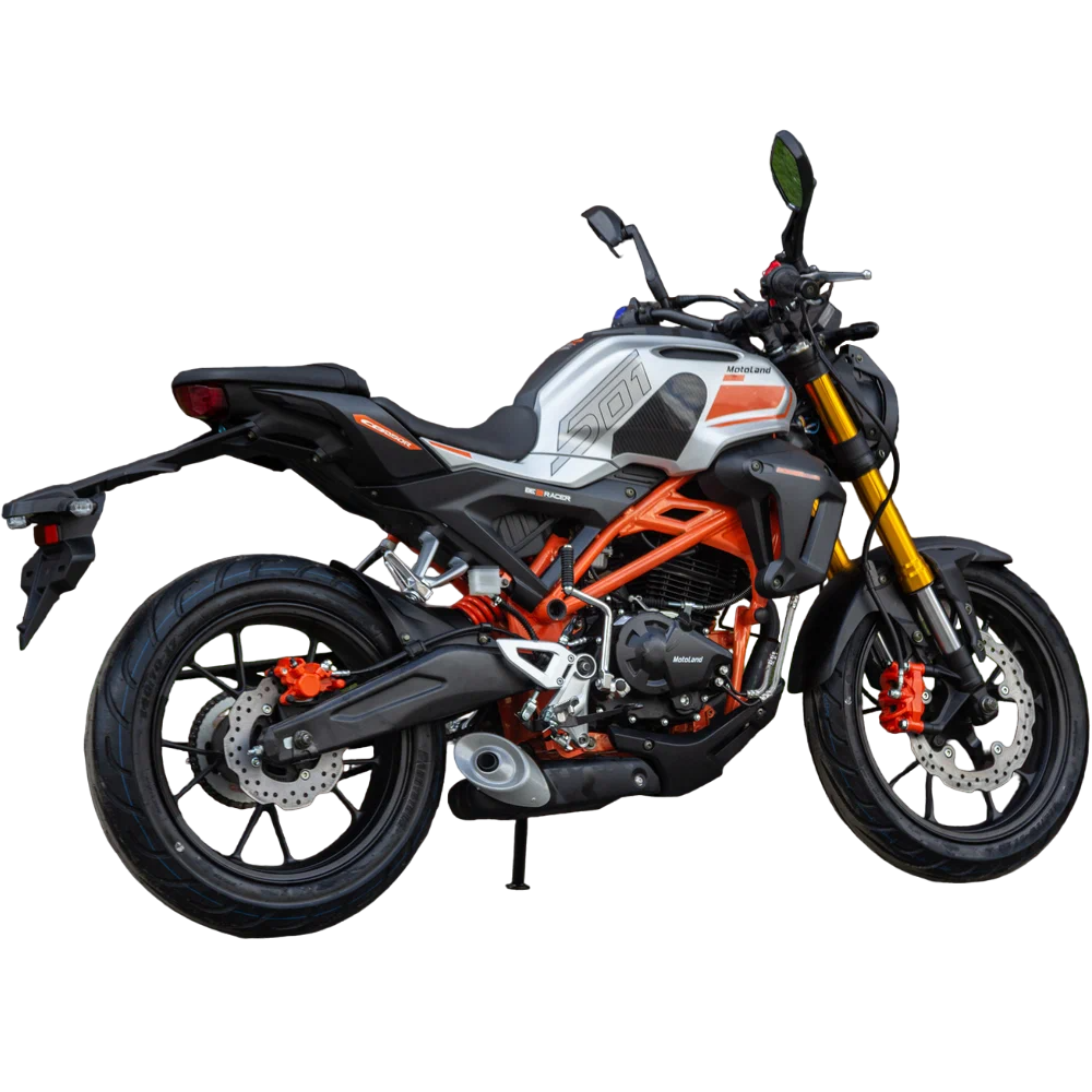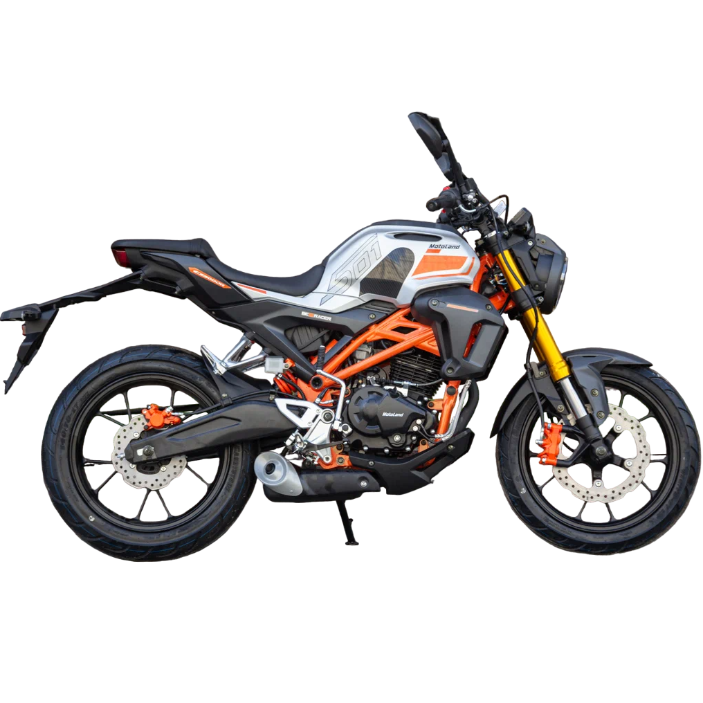 Также на новинке установлены передние тормоза с увеличенными тормозными дисками, литые алюминиевые обода, передняя вилка перевёрнутого типа с большим ходом, которая обеспечивает отличную управляемосnь для комфортного передвижения. Современный дизайн мотоцикла Мотоленд 501 (172FMM-5/PR250) разработан с учетом всех последних новшеств.