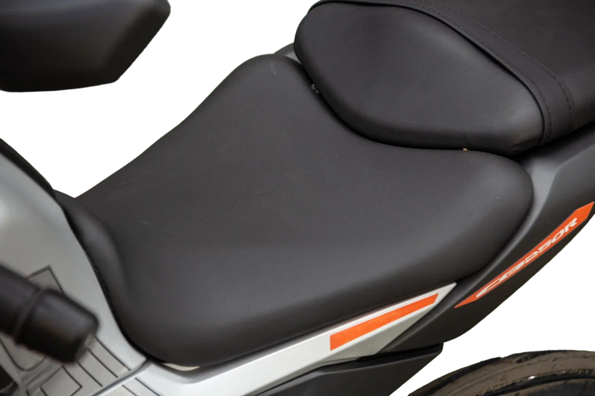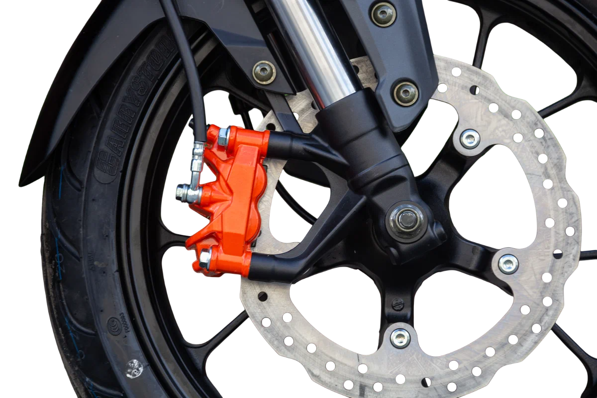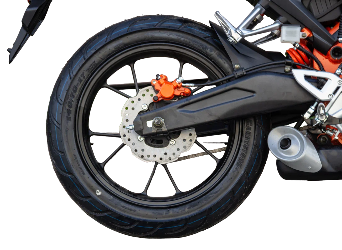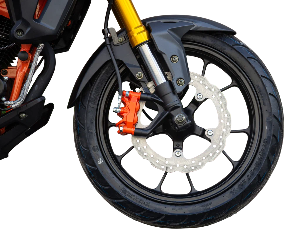 - Хорошо подобранные покрышки на 17" ободах, 110/70 и140/70, обеспечивают отличное сцепление с дорожным покрытием;