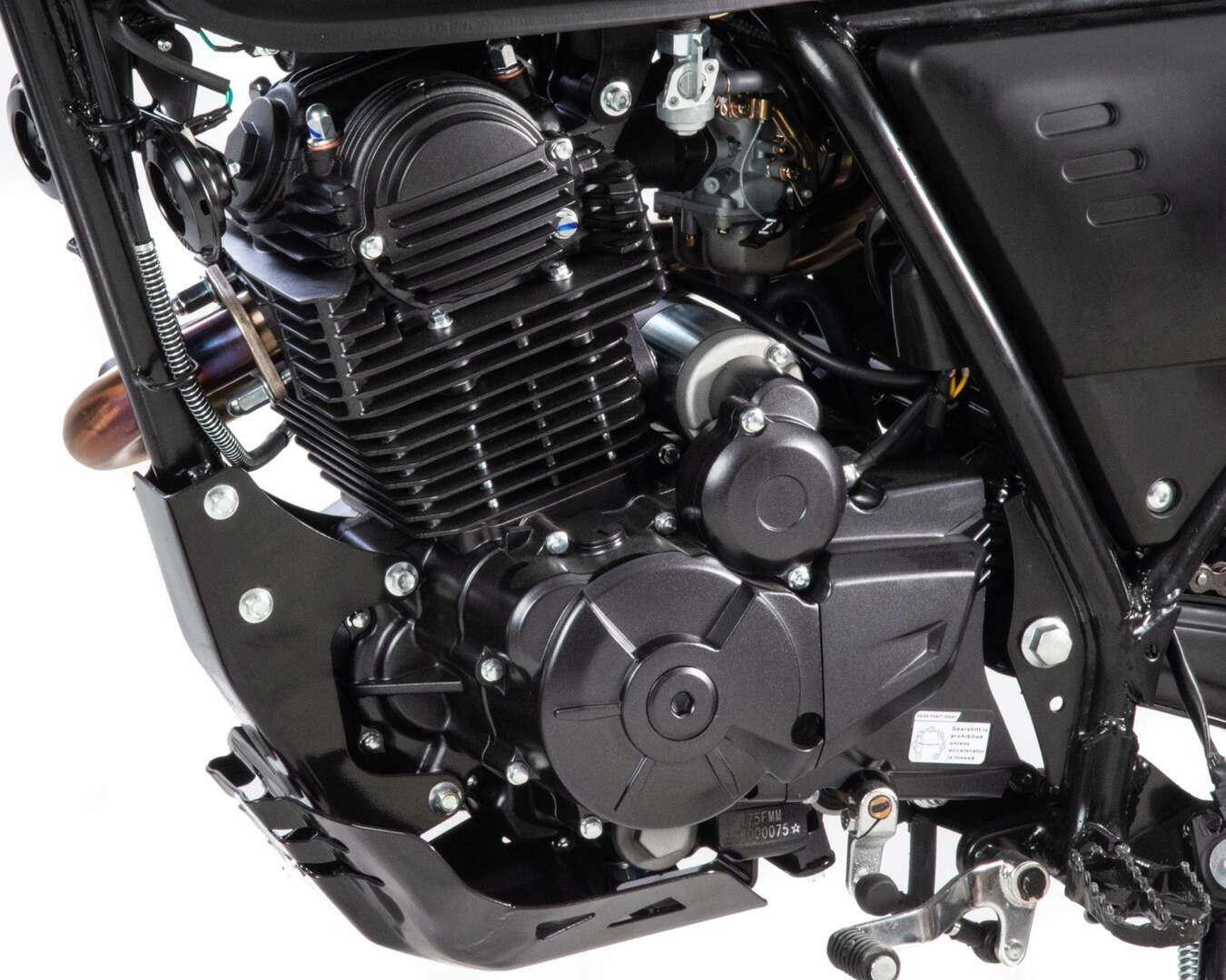 Мотоцикл оснащен двигателем 175FMM-5 (баланс. вал) с 6 ступенчатой коробкой передач, мощностью 25 л.с.