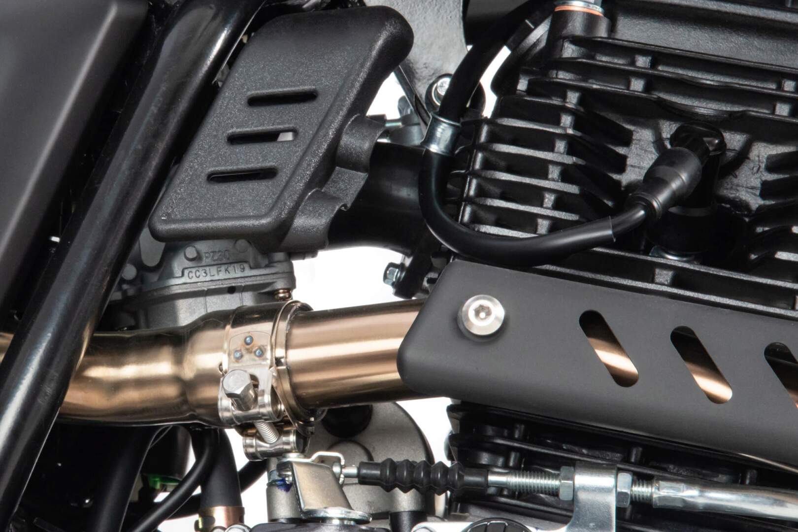 Впуск оснащен карбюратором Keihin PZ30, выпуск – титановым выхлопом от Motoland.