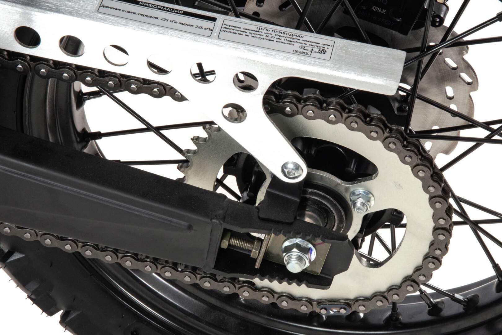 Установлена металлическая защита картера, алюминиевые крылья и защита цепи, усиленный толстостенный руль и усиленная 520 цепь.