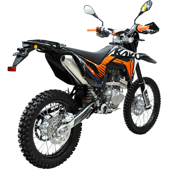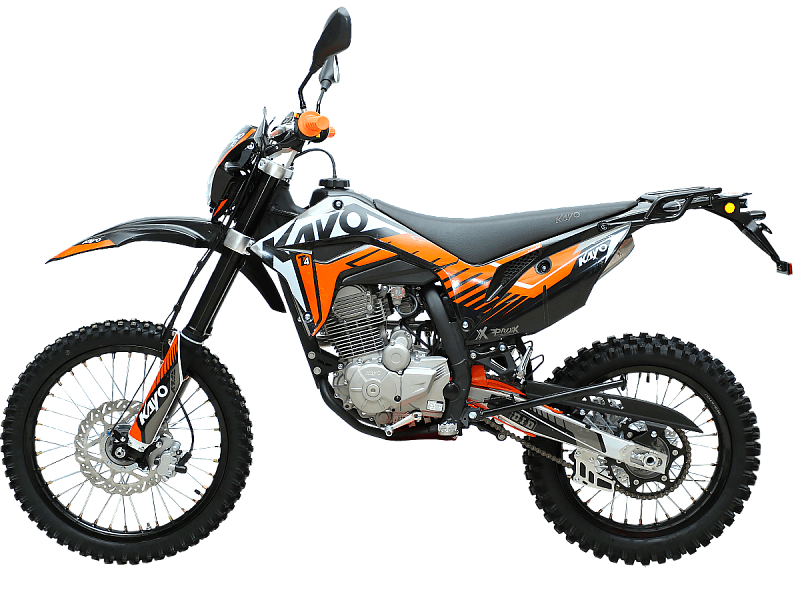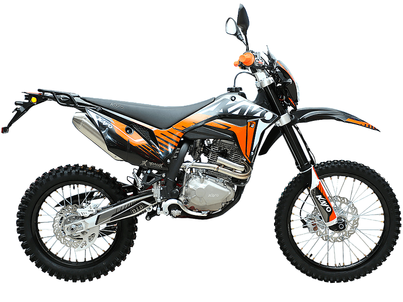 Благодаря наличию ПТС и всему необходимому комплекту светотехники, мотоцикл можно ставить на учёт в ГИБДД и ездить по дорогам общего пользования. KAYO T4 300 Enduro – это надёжный, производительный и мощный эндуро мотоцикл с современным агрессивным дизайном для тех, кто не ищет лёгких путей.