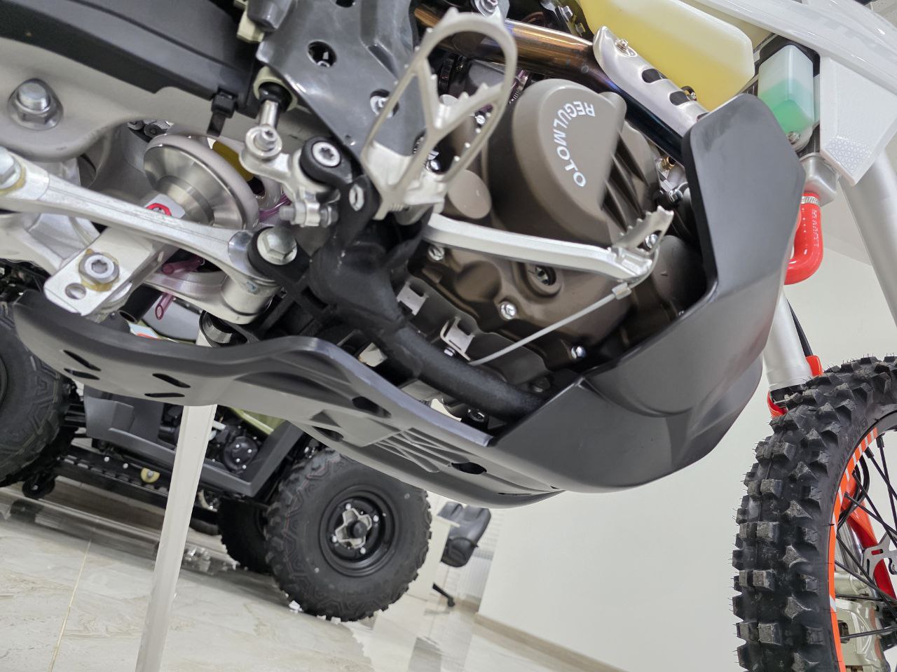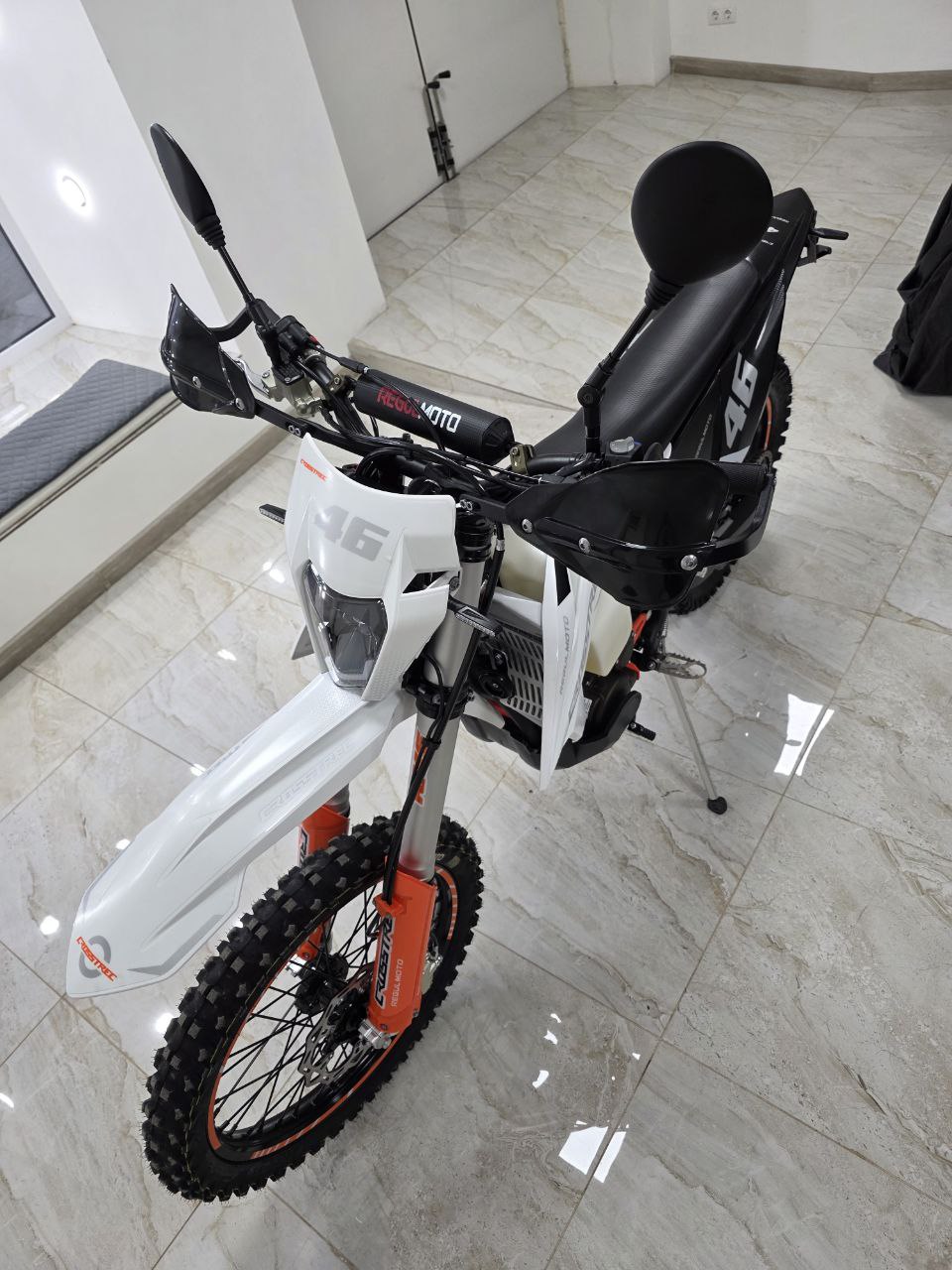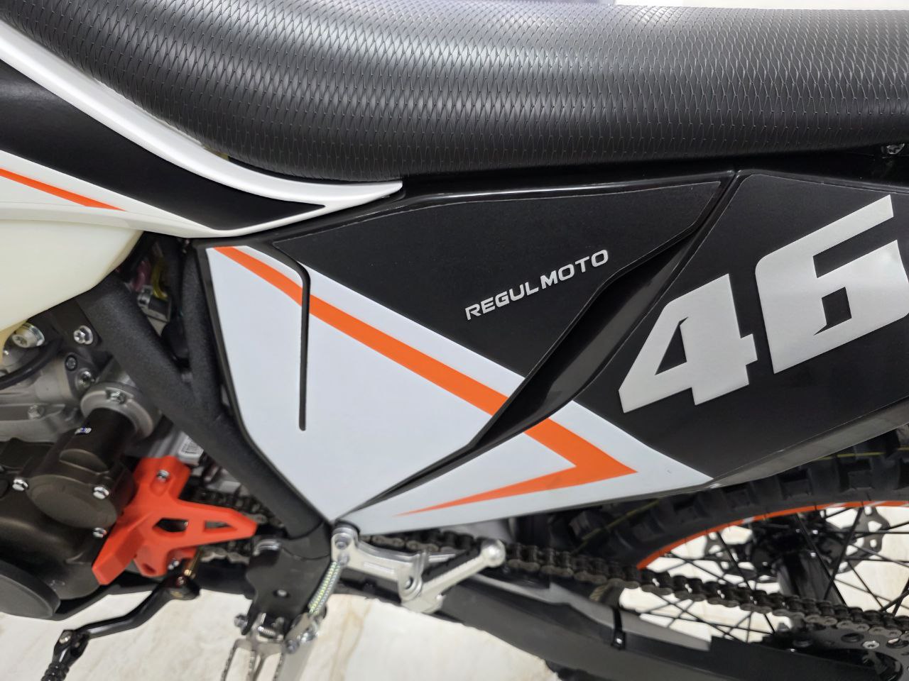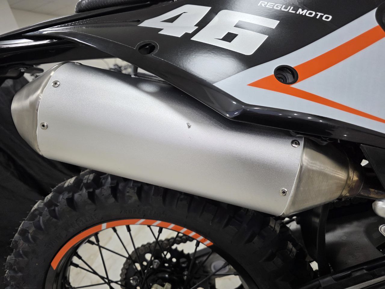 Рама этого мотоцикла многоцелевого назначения изготавливается из высокопрочного хромомолибденового стального сплава, ее конструктив является точной репликой изделия известного австрийского мотобренда, элементы обвеса также идентичны пластику именитого родителя.