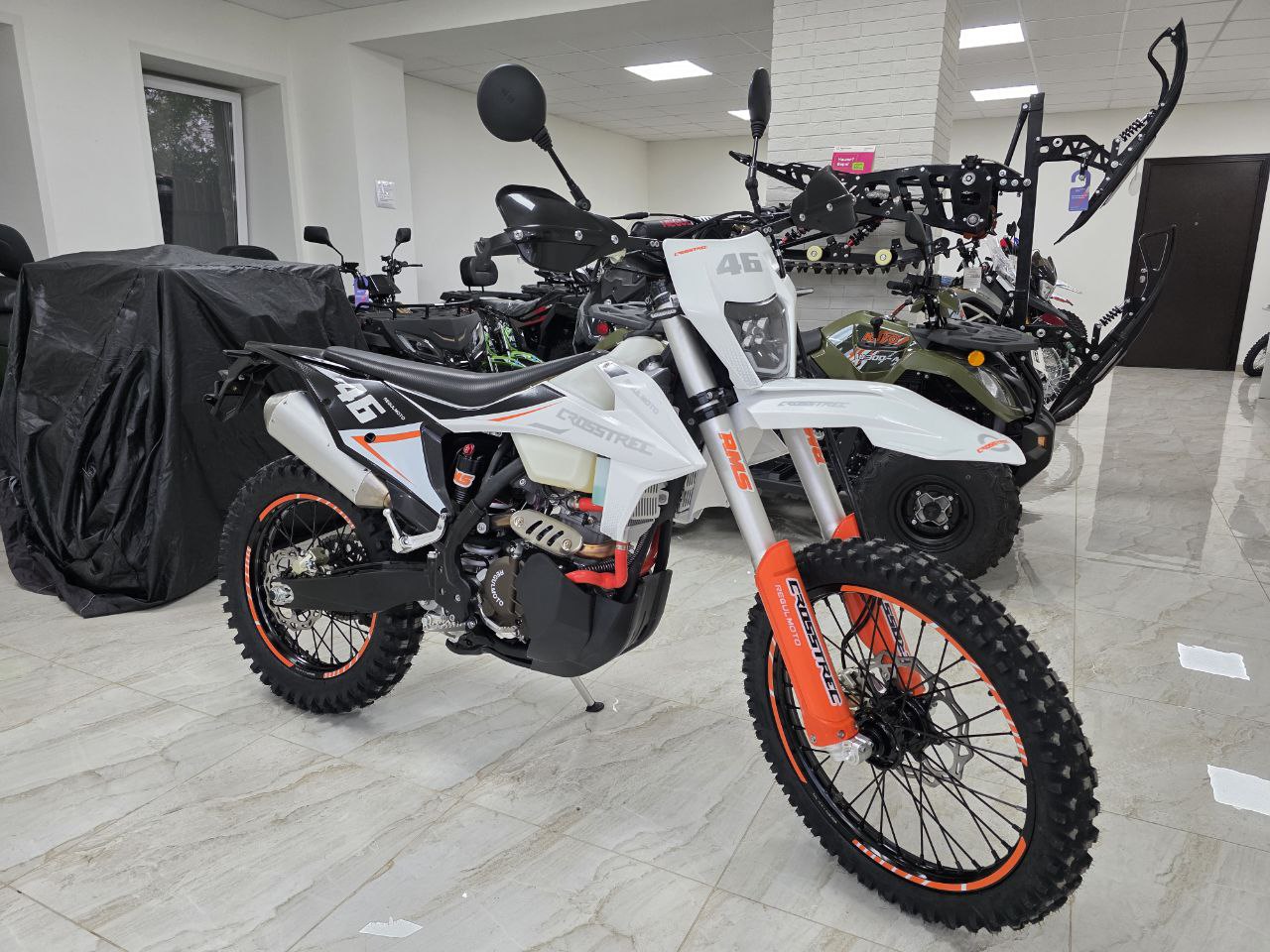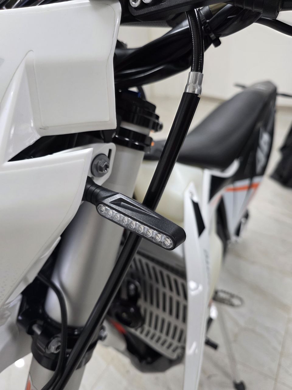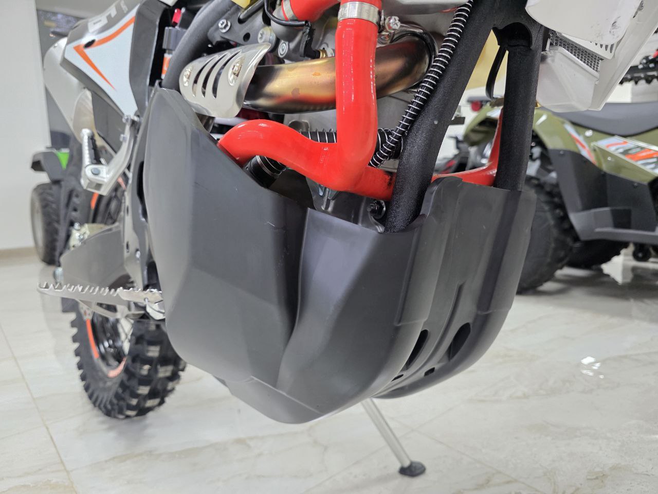 Рама этого мотоцикла многоцелевого назначения изготавливается из высокопрочного хромомолибденового стального сплава, ее конструктив является точной репликой изделия известного австрийского мотобренда, элементы обвеса также идентичны пластику именитого родителя.