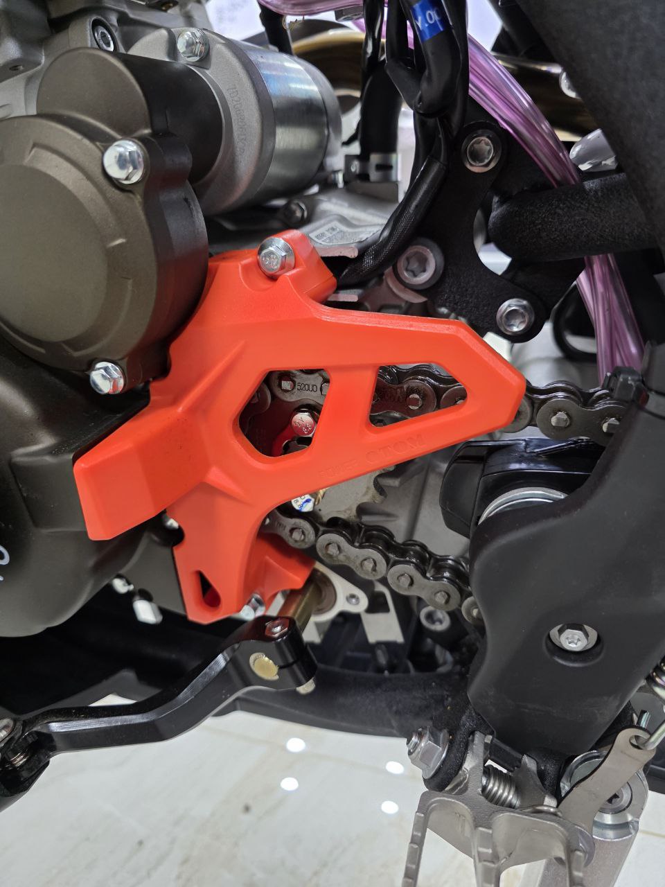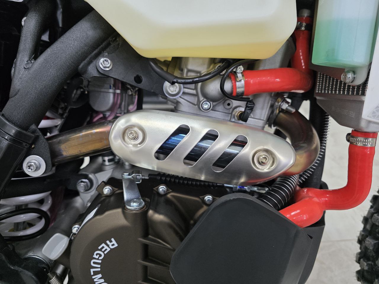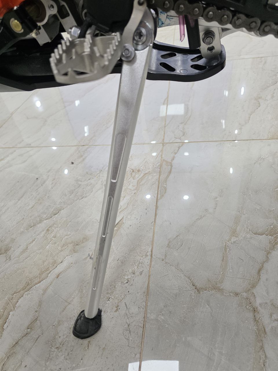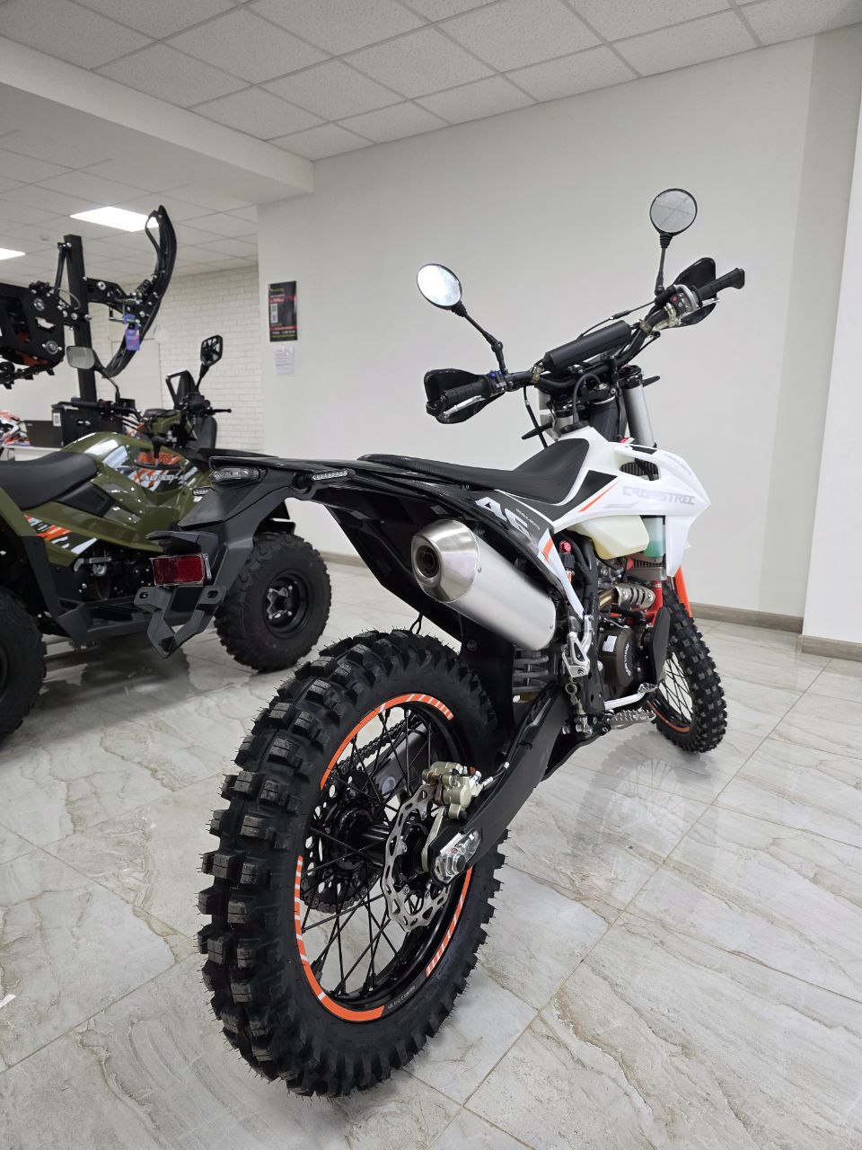 Рама этого мотоцикла многоцелевого назначения изготавливается из высокопрочного хромомолибденового стального сплава, ее конструктив является точной репликой изделия известного австрийского мотобренда, элементы обвеса также идентичны пластику именитого родителя.