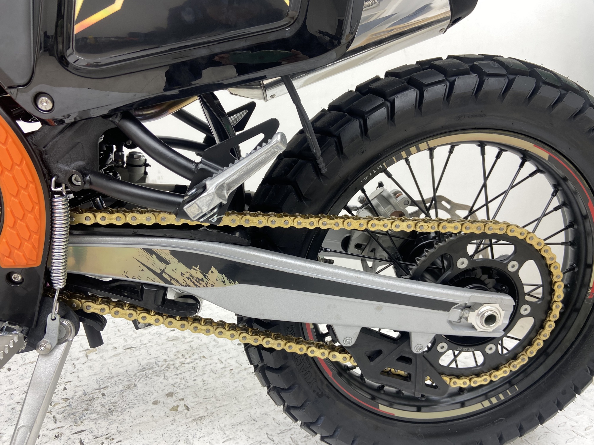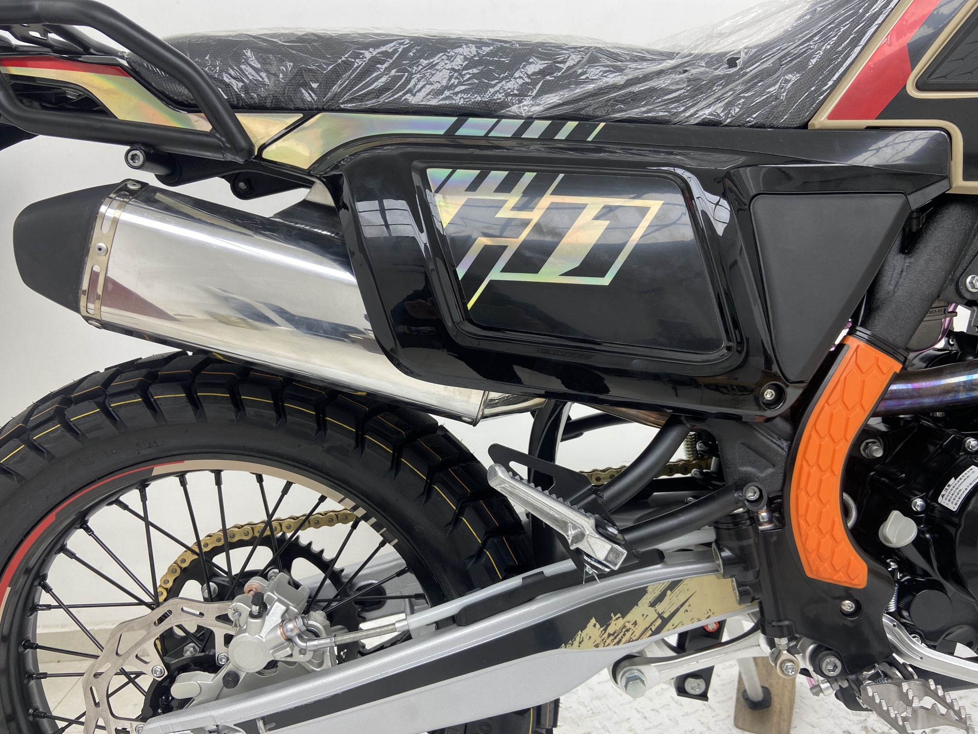 Мотоцикл приспособлен для суровых условий эндуро-заездов, обладает оптимальным балансом мощности, надёжности и управляемости.