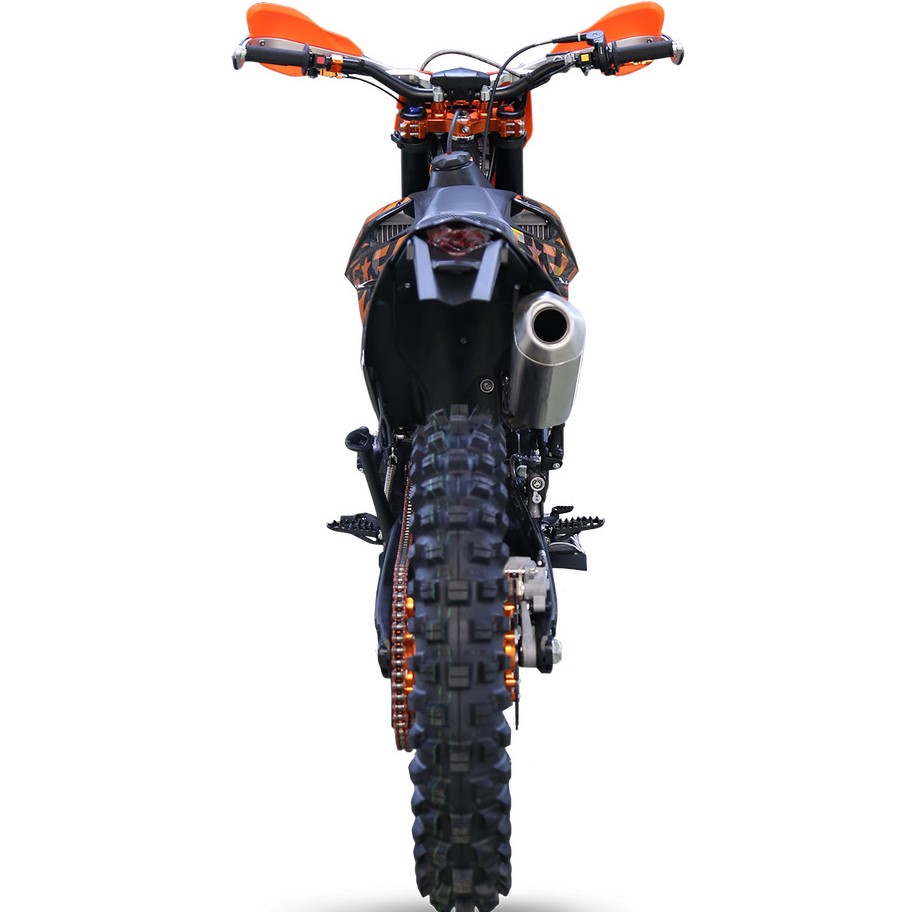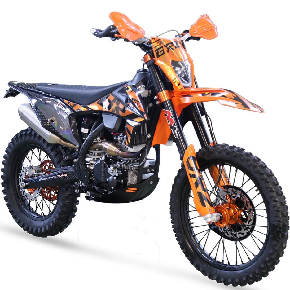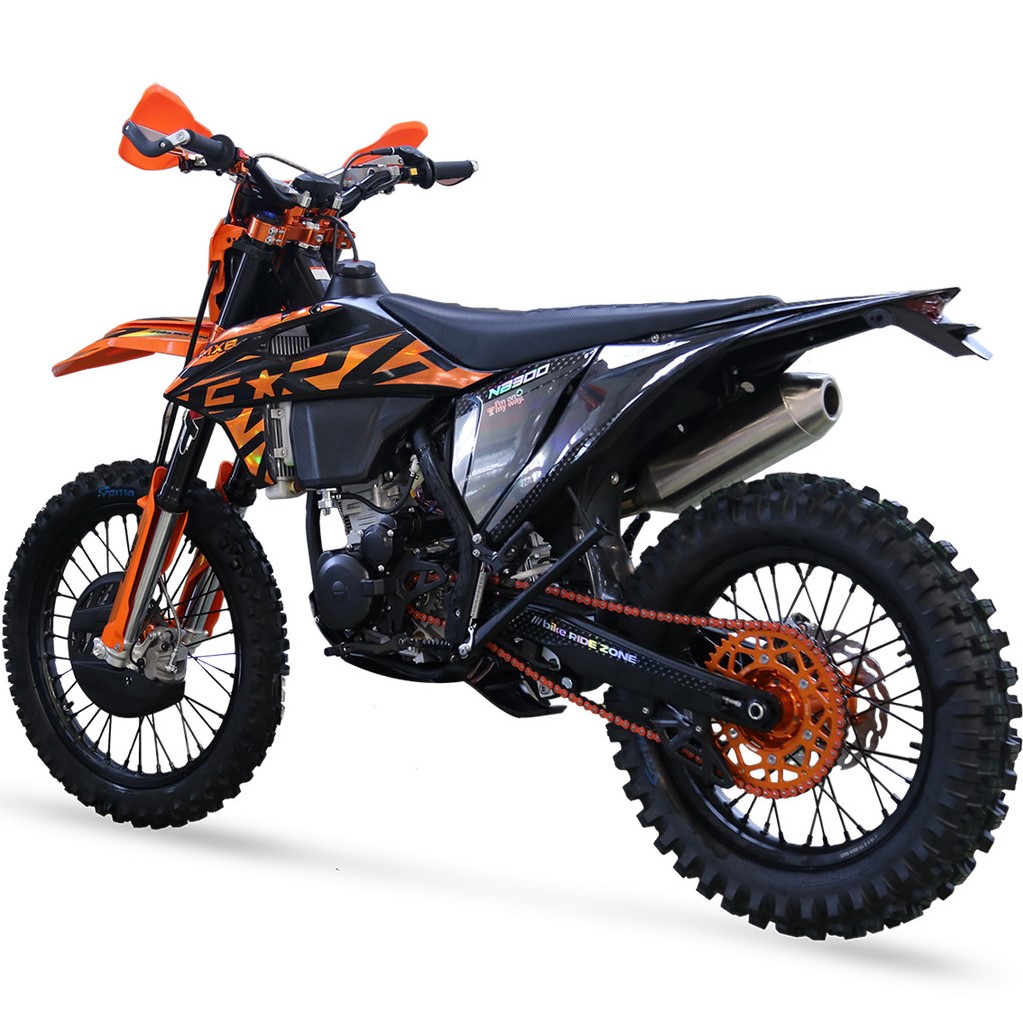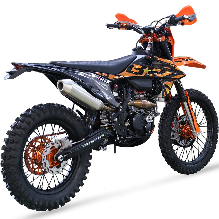 Мощный, тяговитый, надежный - всё это про 174 мотор с "косой головой". MX8 NB300 23 традиционно получил хорошую комплектацию - полностью регулируемая вилка и задний моноамортизатор MNT, крепкие обода Unison, фрезерованные ступицы, руль переменного сечения 28мм, алюминиевые фрезерованные траверсы, алюминиевые подножки водителя и лапки КПП, защита тормозного диска, защита рычагов нового образца (не проворачивается при падении), боковая защита рамы, алюминиевая ведомая звезда CNC, 520 цепь, приборная панель, счетчик моточасов и многое другое.
