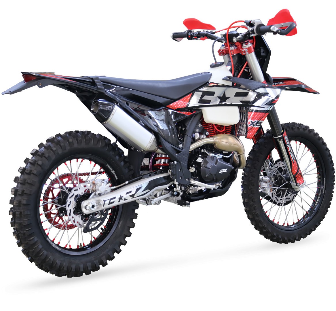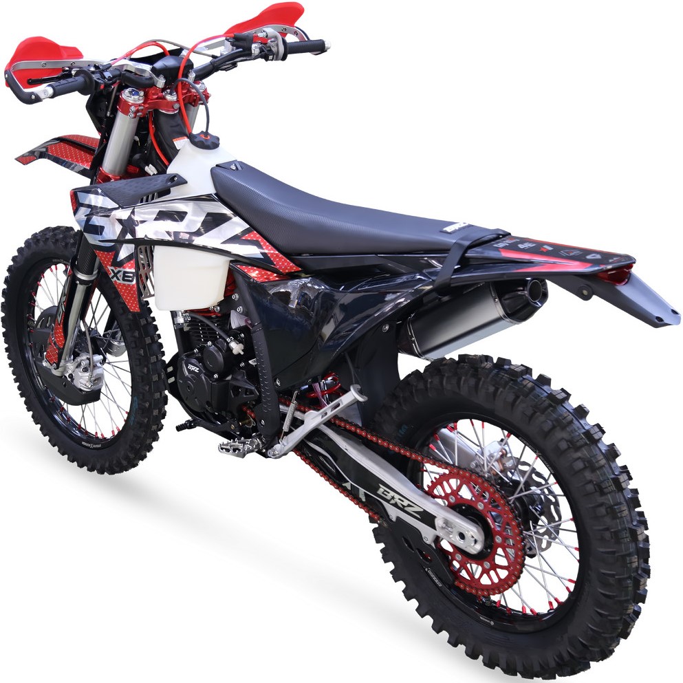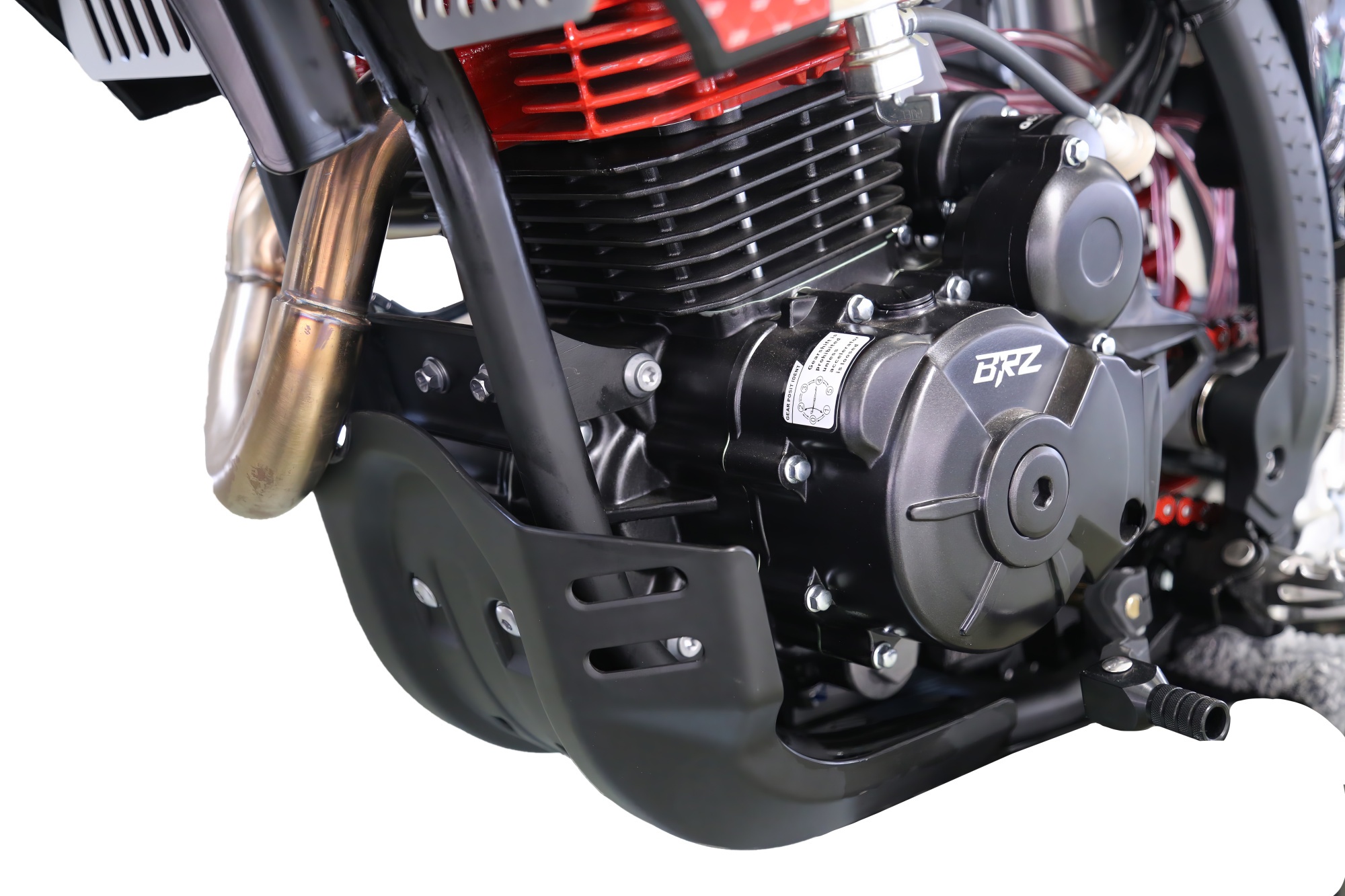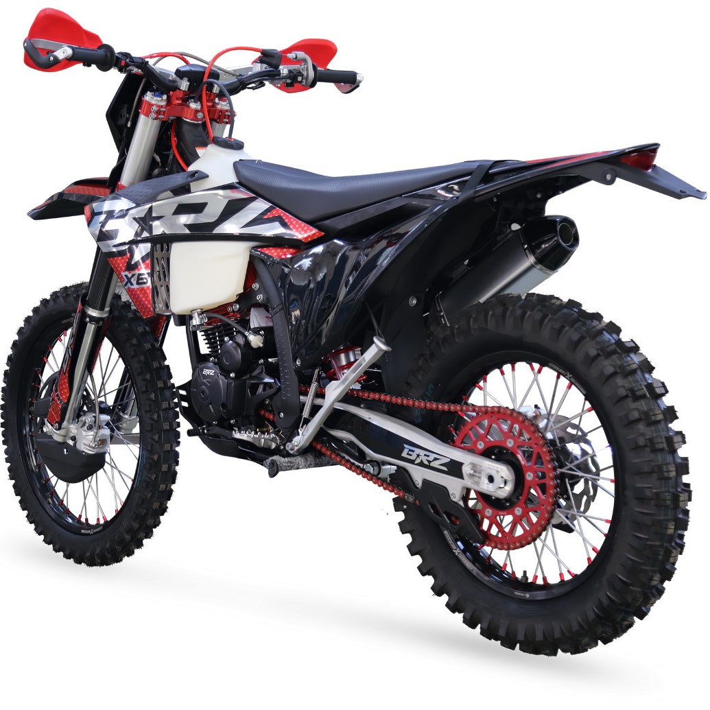 BRZ X8 CB250RL 24 не боится грязи и бездорожья. Жесткая, дуплексная хром-молибденовая рама обеспечивает прочность и надежность. Тип пластика KTM 24 гарантирует стильный внешний вид и долговечность.