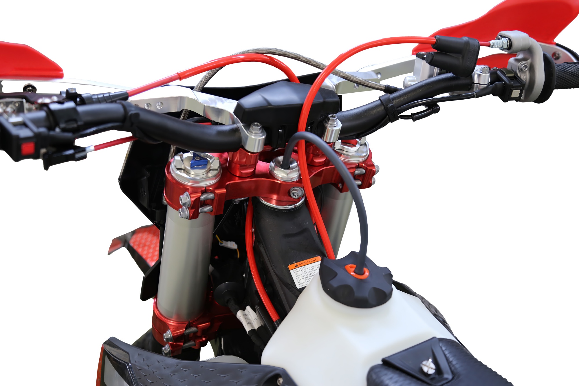 Электростартер для легкого запуска. Руль BRZ twinwall 28мм алюминиевый, короткоходная ручка газа NIBBI для максимального контроля. Защита тормозного диска, защита рук, боковая защита рамы для уверенности в любой ситуации. Счетчик моточасов для отслеживания пробега и обслуживания.