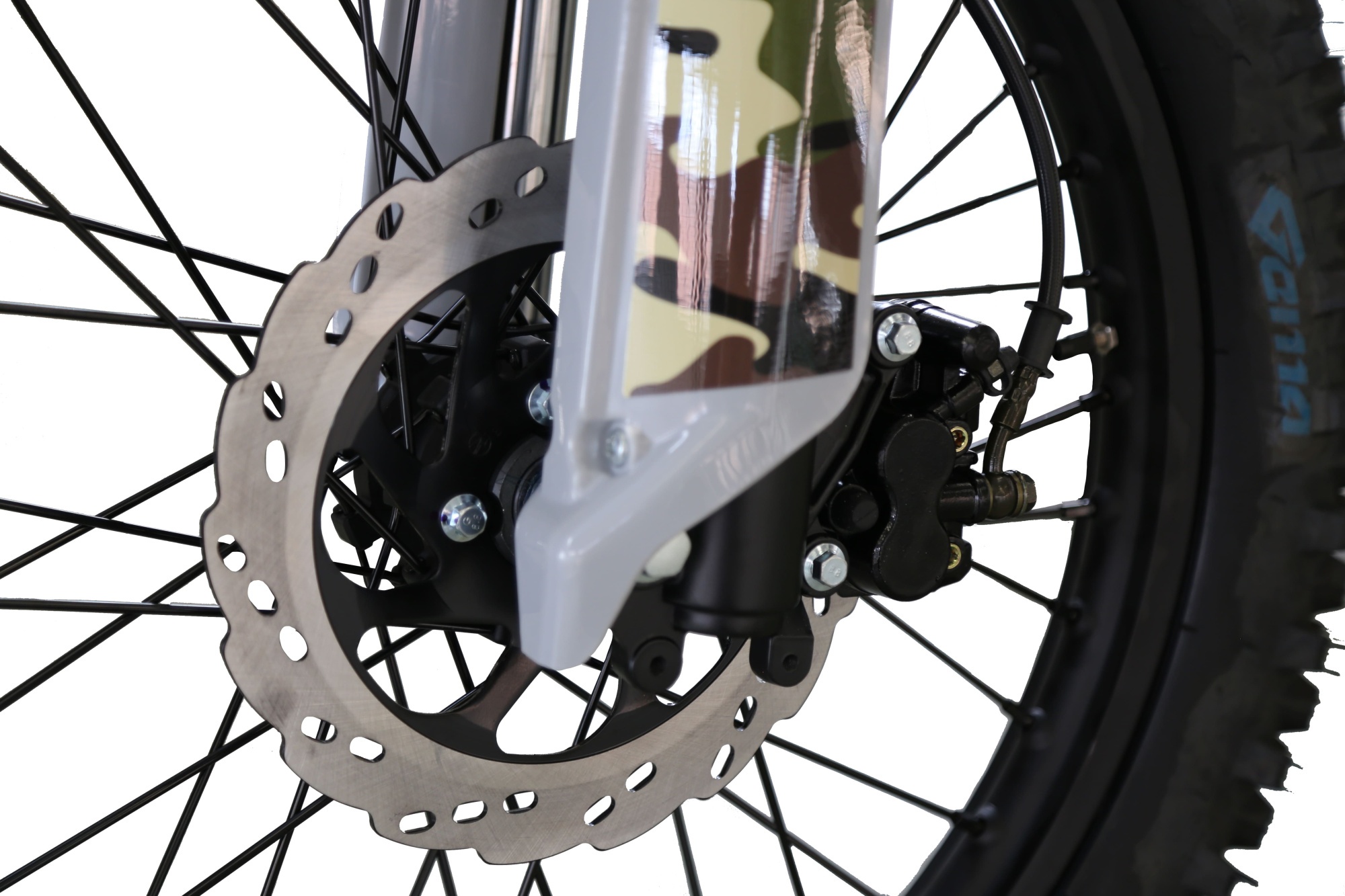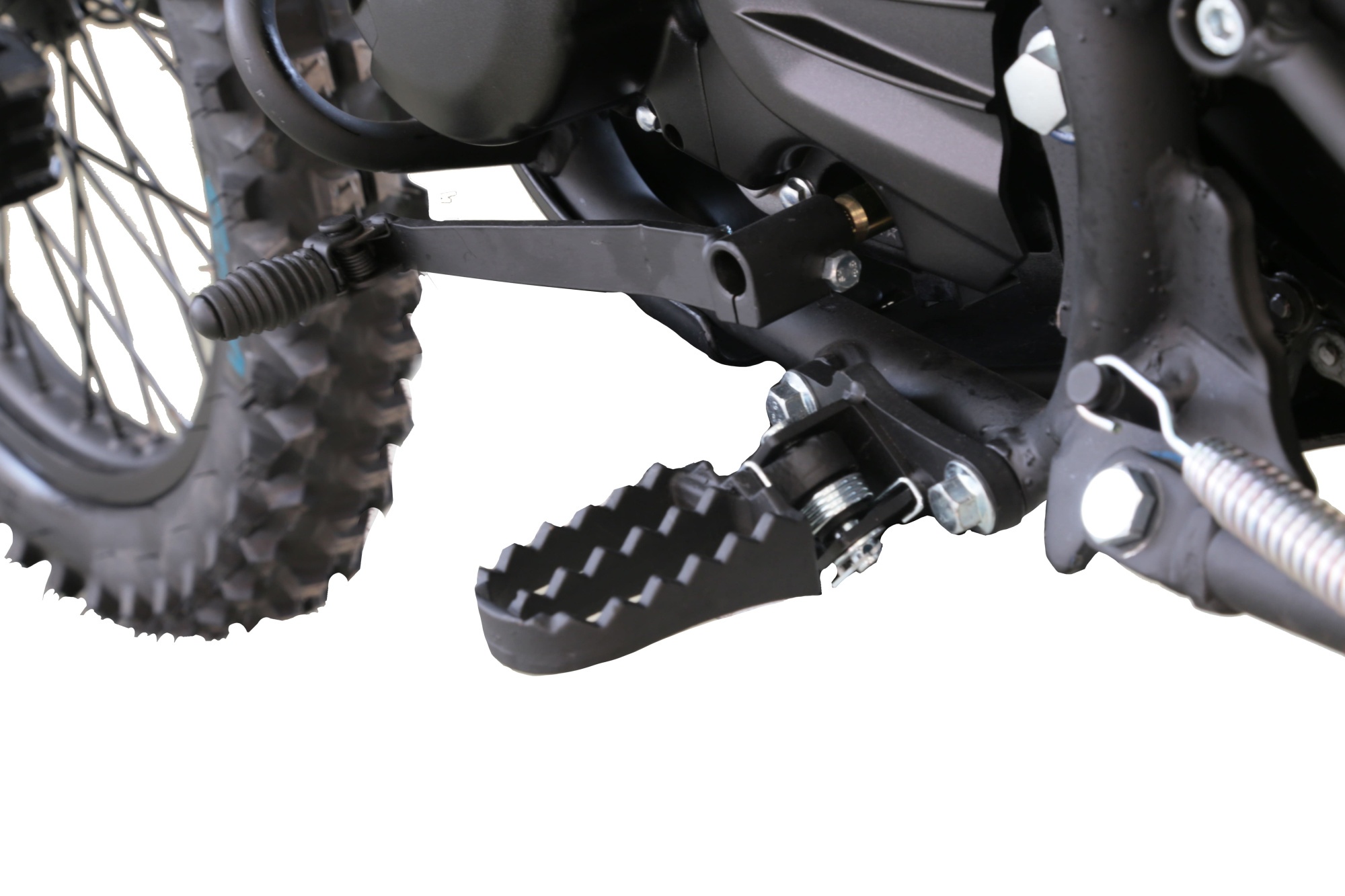 Рама мотоцикла выполнена из высококачественной стали с пластиковыми элементами, стилизованными под CRF, что придает ему стильный внешний вид и дополнительную прочность. Передняя вилка не имеет регулировок, что упрощает обслуживание, в то время как задний моноамортизатор с регулировкой и прогрессией обеспечивает отличную управляемость и комфорт во время поездки.