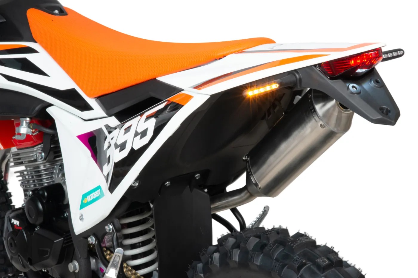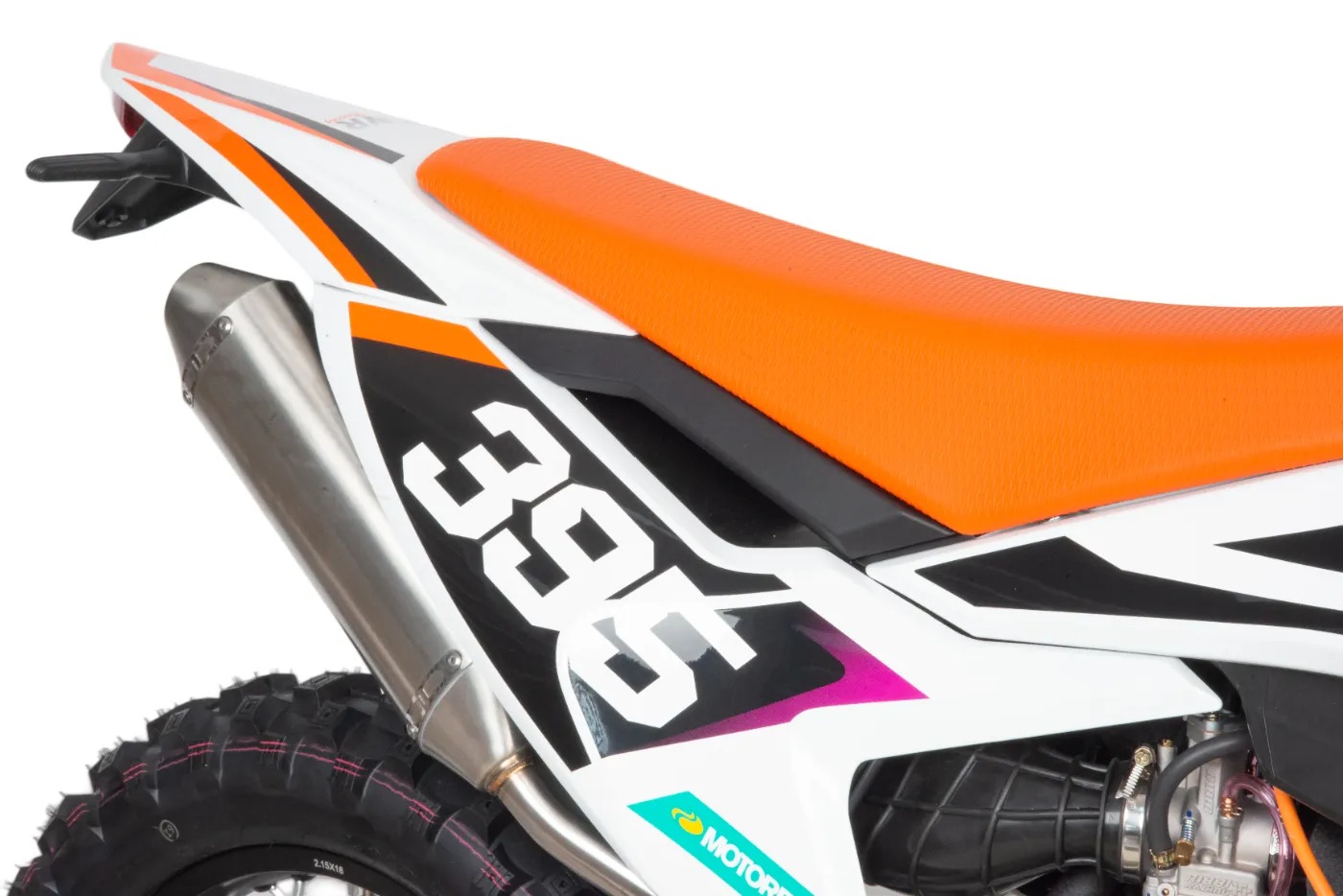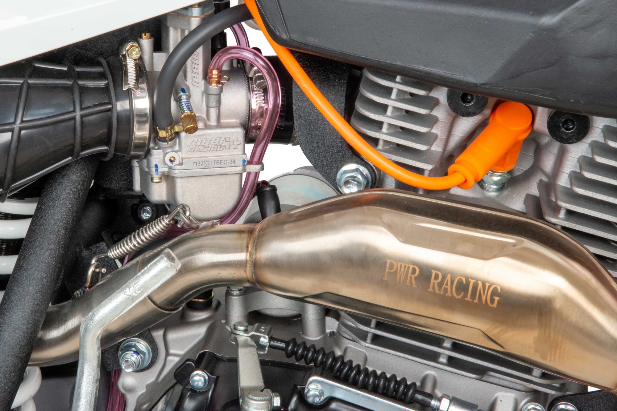 Разгоняется до 140 км/ч. Выхлопная система с резонатором, глушитель алюминиевый. Идеален для бездорожья, т.к. его кроссовые шины (80-100-21) и (120-90-18) просто созданы для езды по мягкому и среднему грунту.