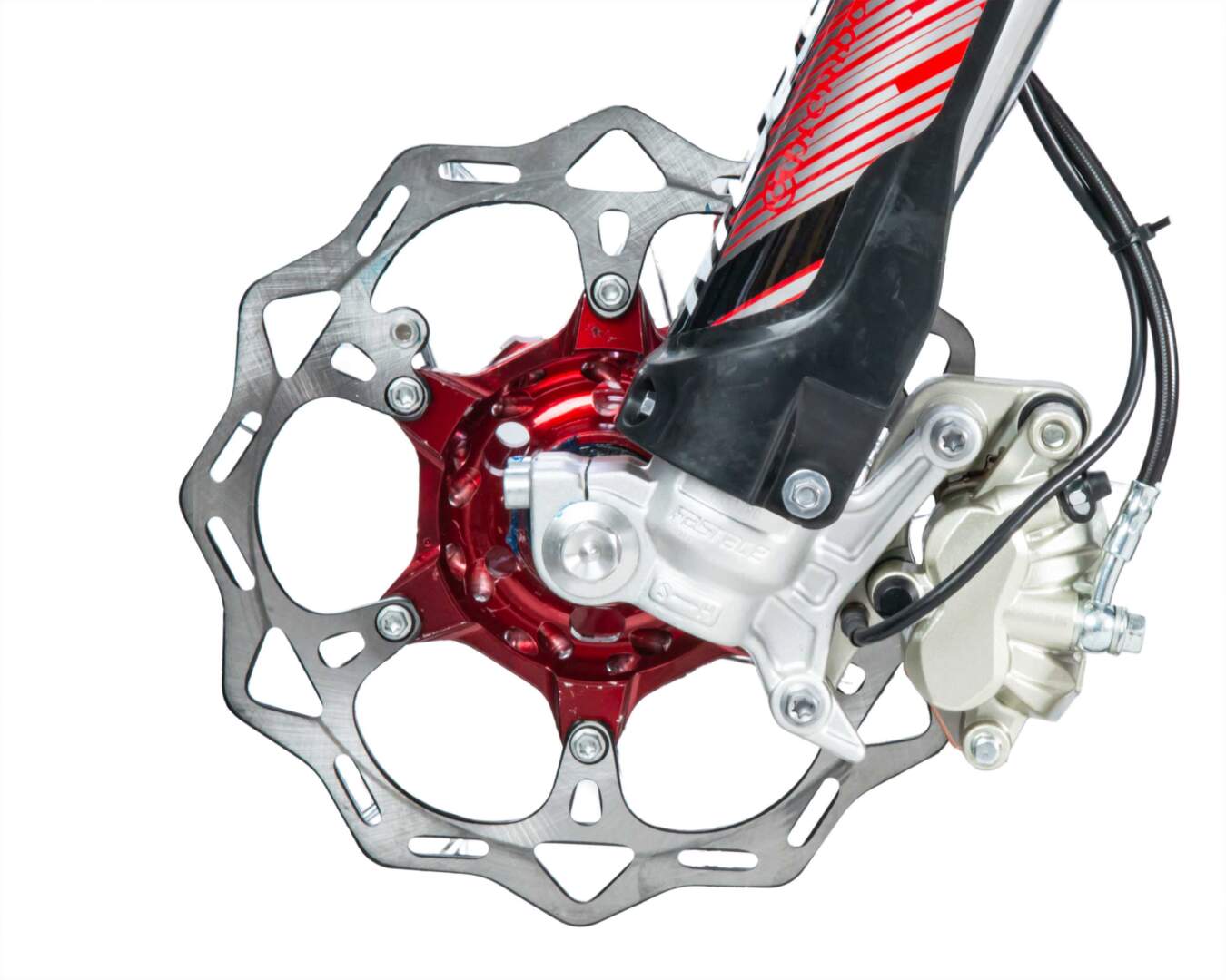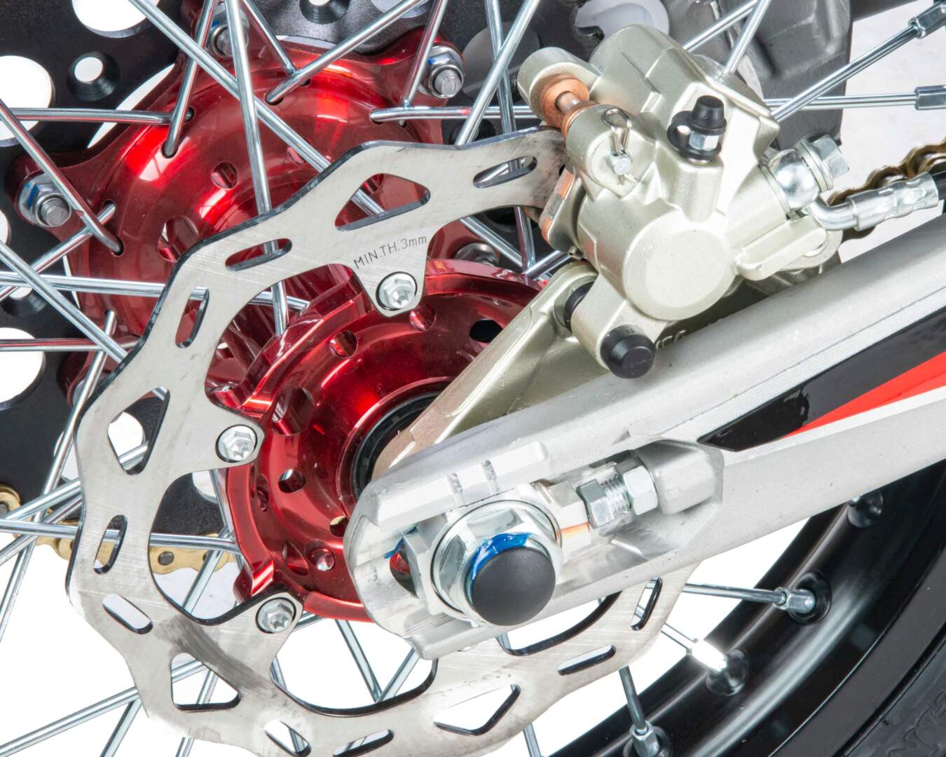 Подвеска представлена передней телескопической вилкой перевернутого типа с возможностью регулировки, а сзади установлена маятниковая конструкция с моноамортизатором. Это обеспечивает высокий уровень комфорта и управляемости даже на сложных трассах. Спицованные алюминиевые диски придают конструкции дополнительную прочность, а дисковые тормоза с двухпоршневым суппортом спереди и однопоршневым сзади гарантируют надежное торможение в любых условиях.