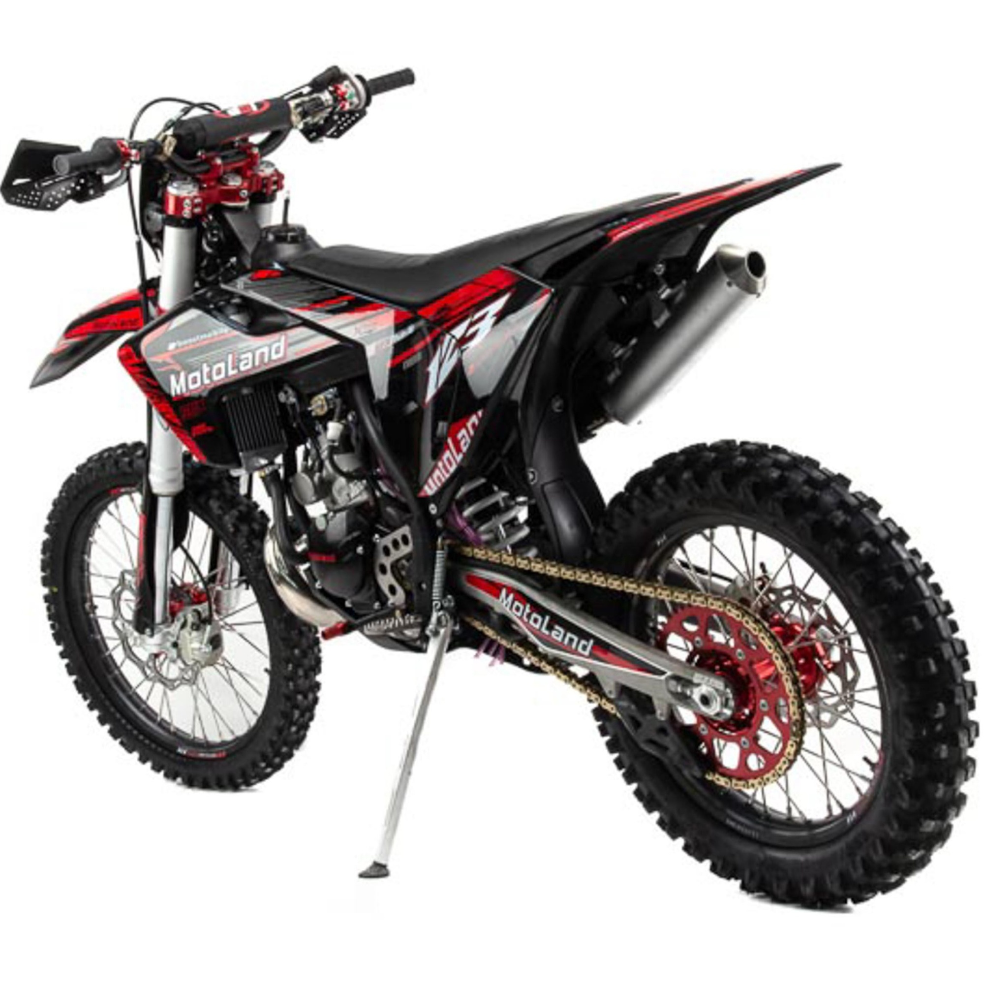 Топовый мотоцикл выглядит соответствующе — стильно и солидно. Без лишнего пафоса, но с уверенностью в собственном превосходстве над аналогами. Как и другие модели Motoland покрыт комбинированным пластиком, который не ломается при сгибании. Все стыки идеально подогнаны, наклейки ровные. Кроссовый мотоцикл доступен в красном цвете — внешний вид кросса подчёркивает несгибаемый характер и нацеленность на бескомпромиссную спортивную борьбу.