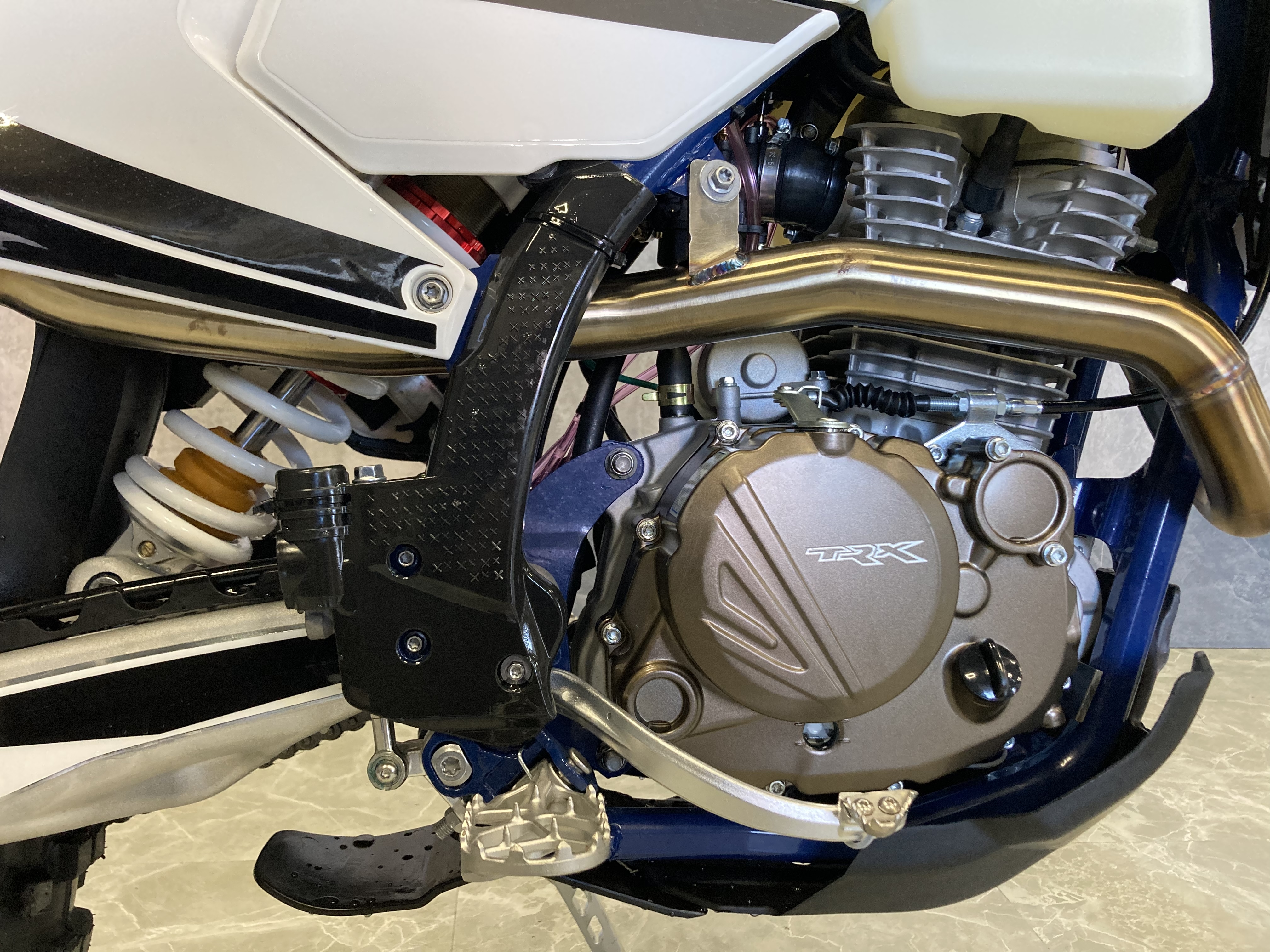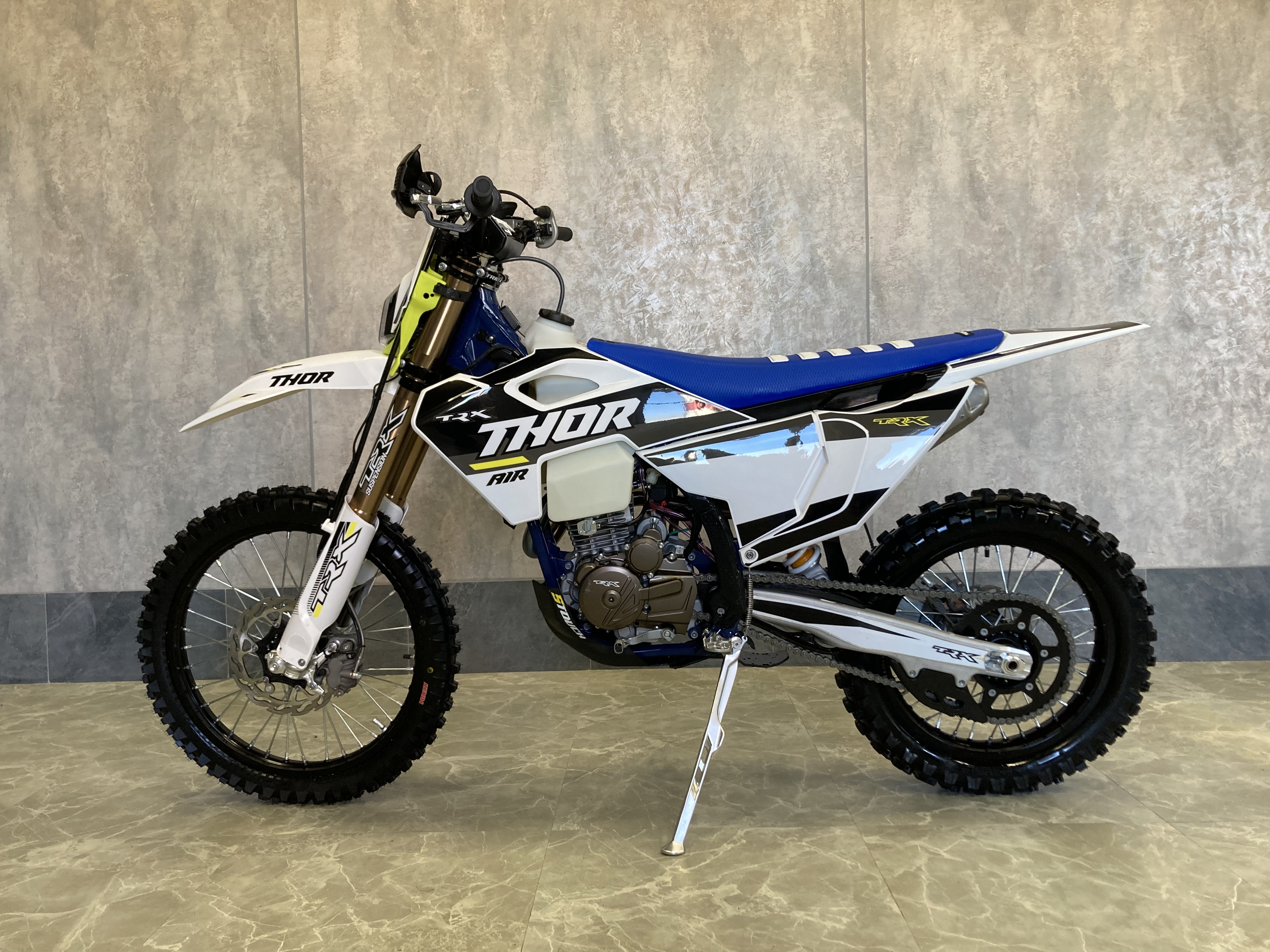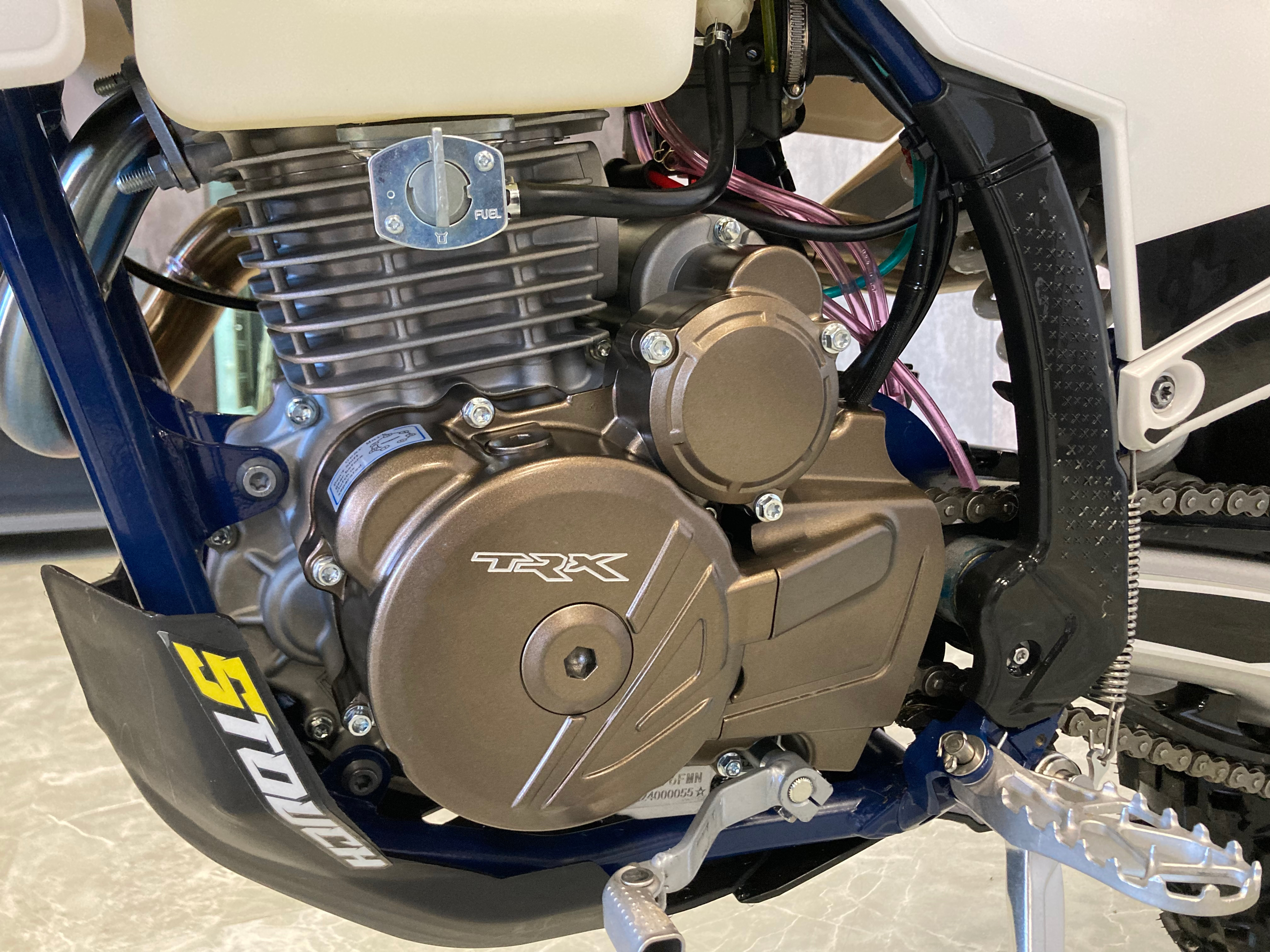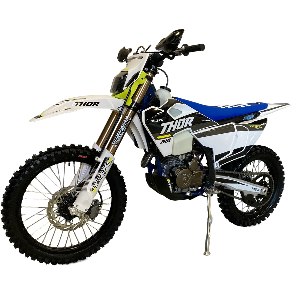 TRX Thor 300 Air оснащён мощным двигателем Loncin LX-YB300H с воздушным охлаждением, обеспечивающим 25 л.с. и плавное распределение мощности. Алюминиевые детали, включая маятник и гибридный подрамник, делают мотоцикл лёгким, а передняя и задняя регулируемая подвеска HTW гарантируют комфорт и управляемость. Увеличенный бак на 11 литров позволяет покорять большие расстояния, а стильный дизайн с белым пластиком Husqvarna подчёркивает ваш вкус. Этот мотоцикл готов к новым вызовам вместе с вами!