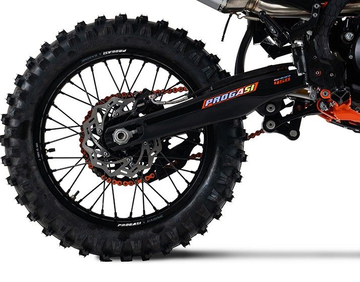 Рама Progasi Hardcore 450 – это идеальная развесовка и геометрия. Используя передовой опыт Gas-Gas и KTM 2022 года. Она сделана с упором на надежность и долгий срок службы. Все узлы качественно проварены, есть дополнительные усиления. На раму специально крепится пластиковый каркас, который защищает мотоботы и раму. Конструкция рамы позволяет обсуживать мотоцикл, регулировать зазоры клапанов и производить замену свечи без снятия двигателя. Маятник изготовлен из авиационного алюминия, что дает высокую жесткость на скручивание.