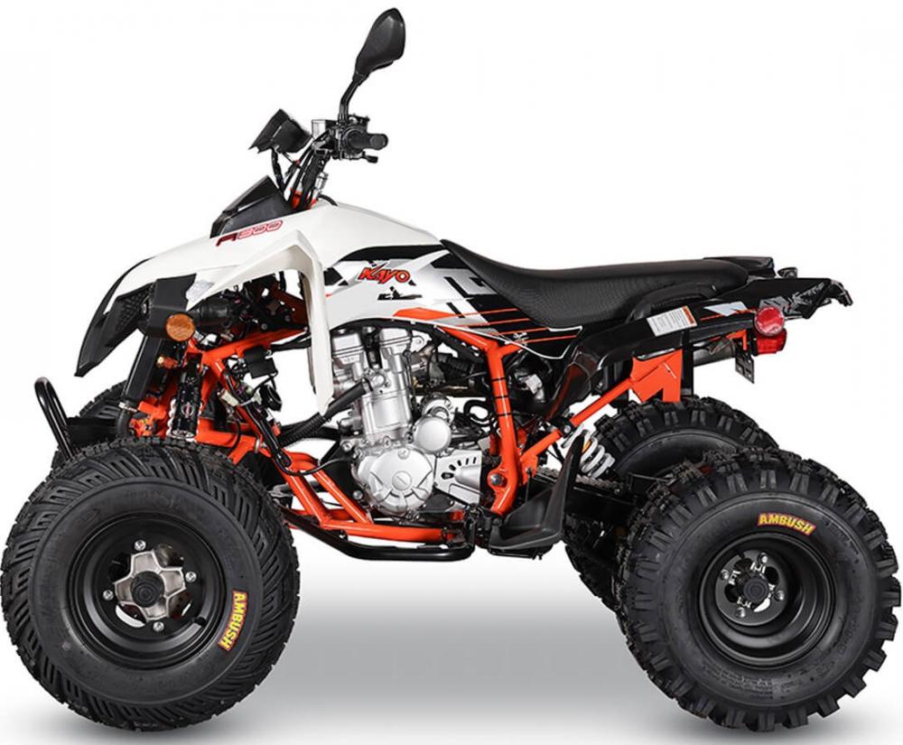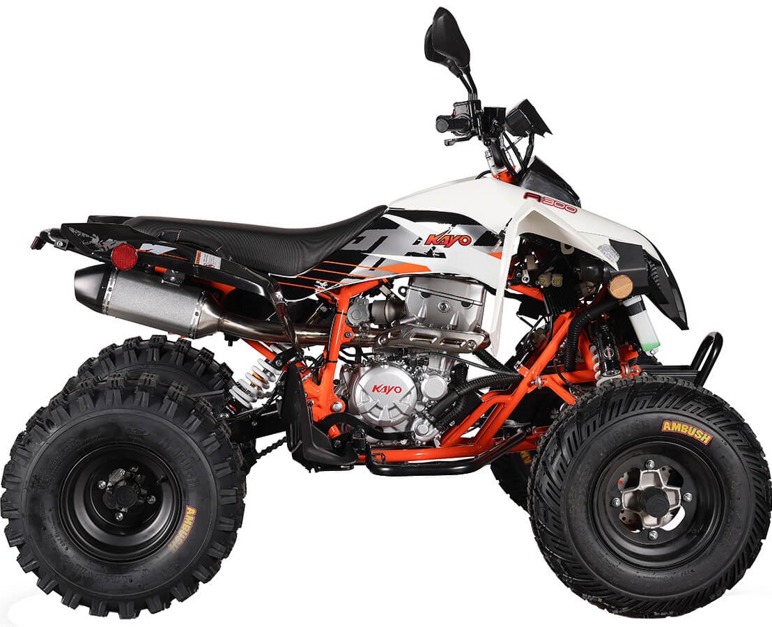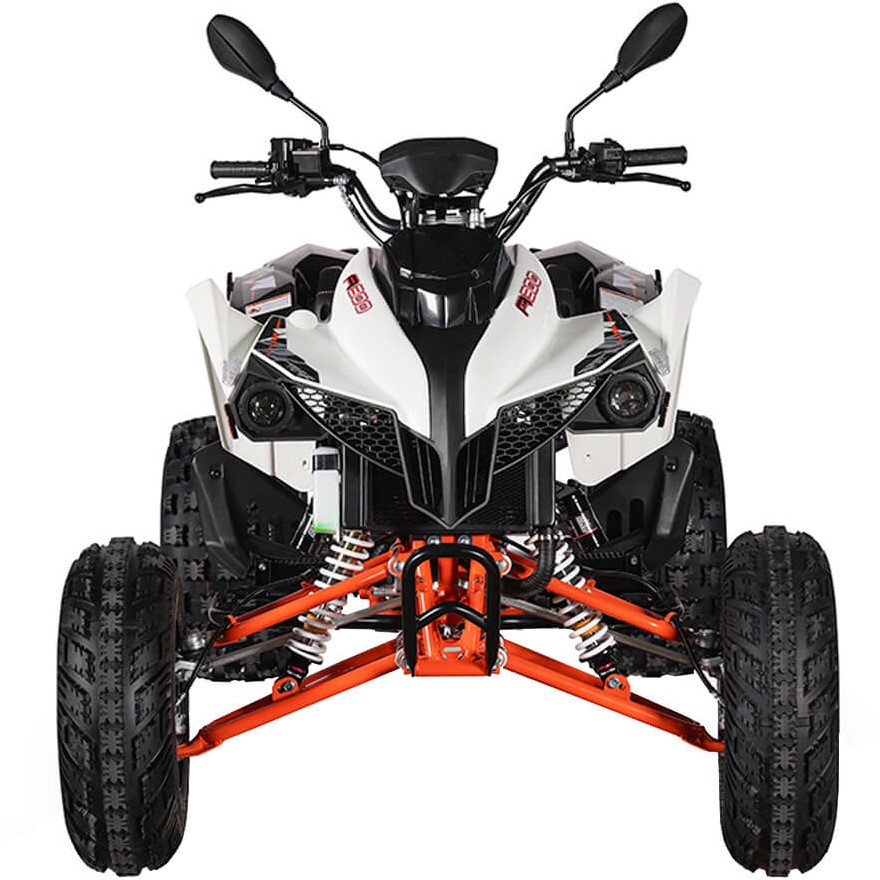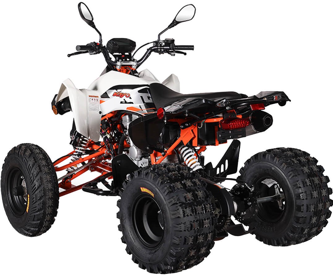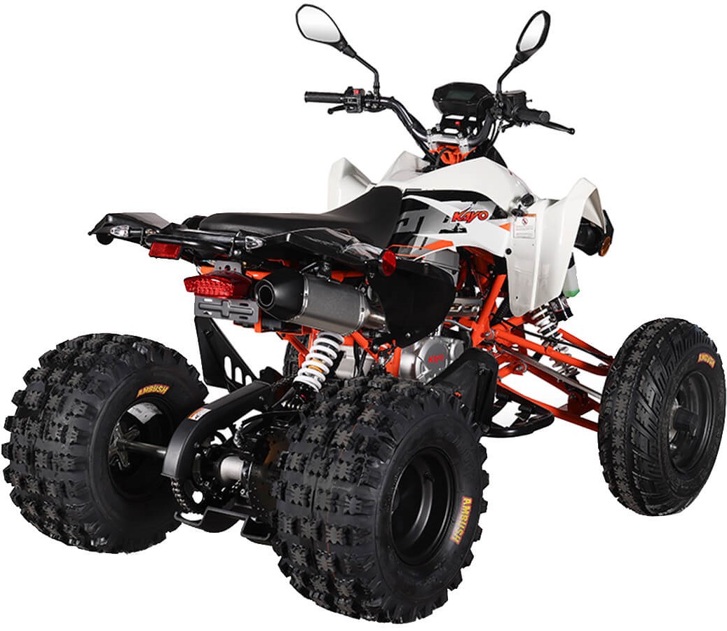 На KAYO A300 задействована развитая многорычажная подвеска. Удлинённые рычаги позволили изменить угол наклона амортизаторов и увеличить ширину колеи. Это повысило устойчивость и управляемость квадрицикла. Для адаптации под конкретные задачи подвеску можно настраивать. Длина переднего амортизатора 375 мм, длина заднего амортизатора 380 мм.