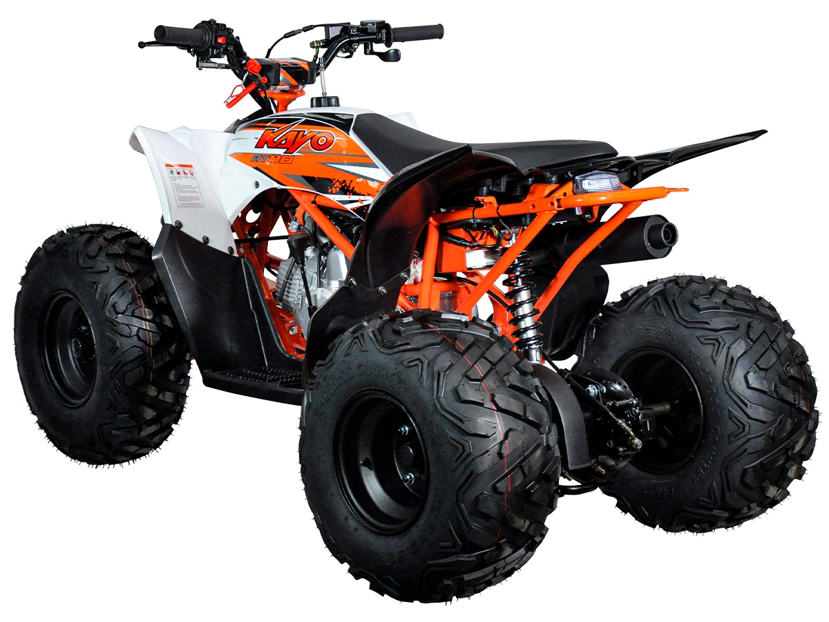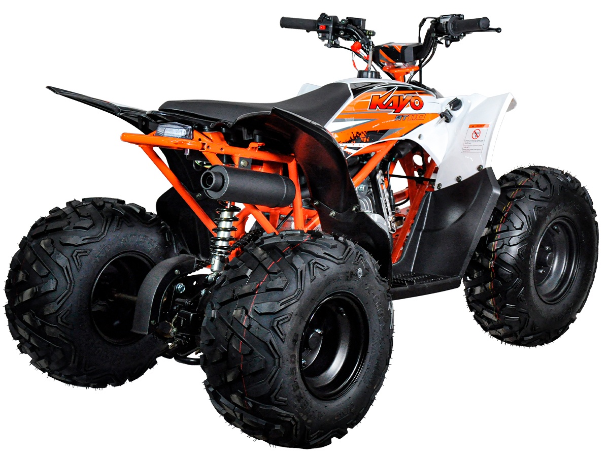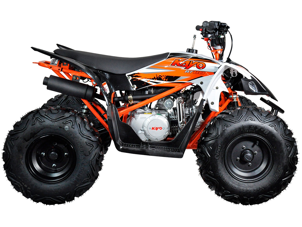 Квадроцикл Kayo AT110 построен на стальной трубчатой раме. Такая конструкция позволила сделать квадроцикл прочным и легким.