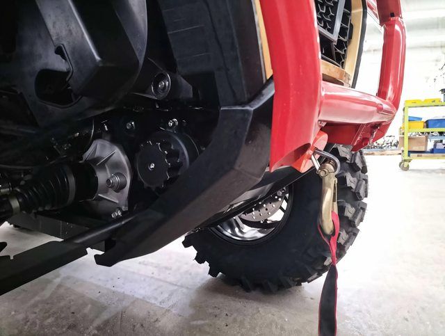 Регулируемая подвеска. Уверенно двигайтесь вперед! Благодаря регулируемой подвеске, клиренсу в 33 сантимера и внушительному углу атаки, вы готовы покорить самую сложную местность. 14-дюймовые диски и внедорожние шины позволят чуствовать себя комфортно на любой трассе.