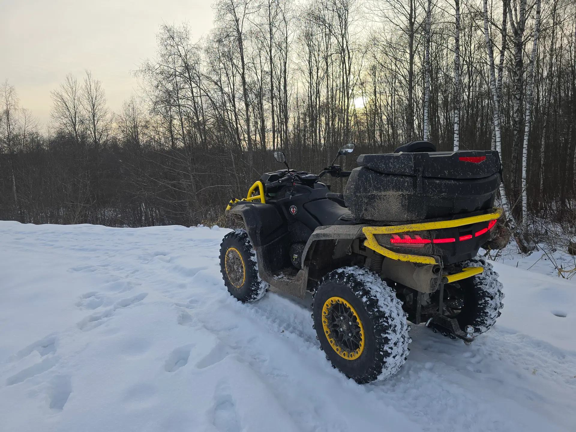 14-дюймовые колесные диски с фиксатором обода. Литые алюминиевые 14-дюймовые диски и внедорожные шины делают квадроцикл комфортным на любых скоростях.