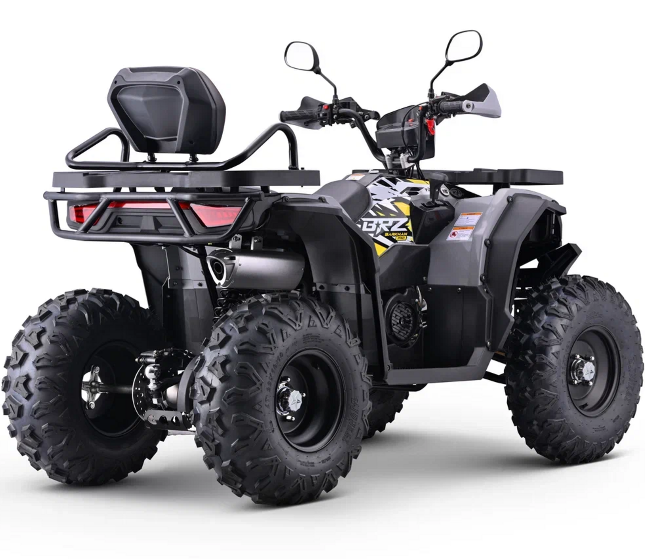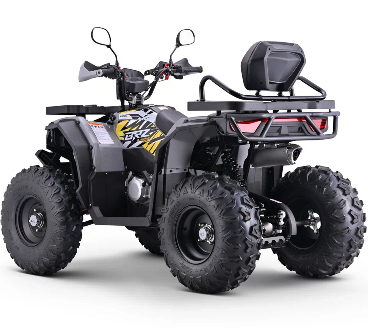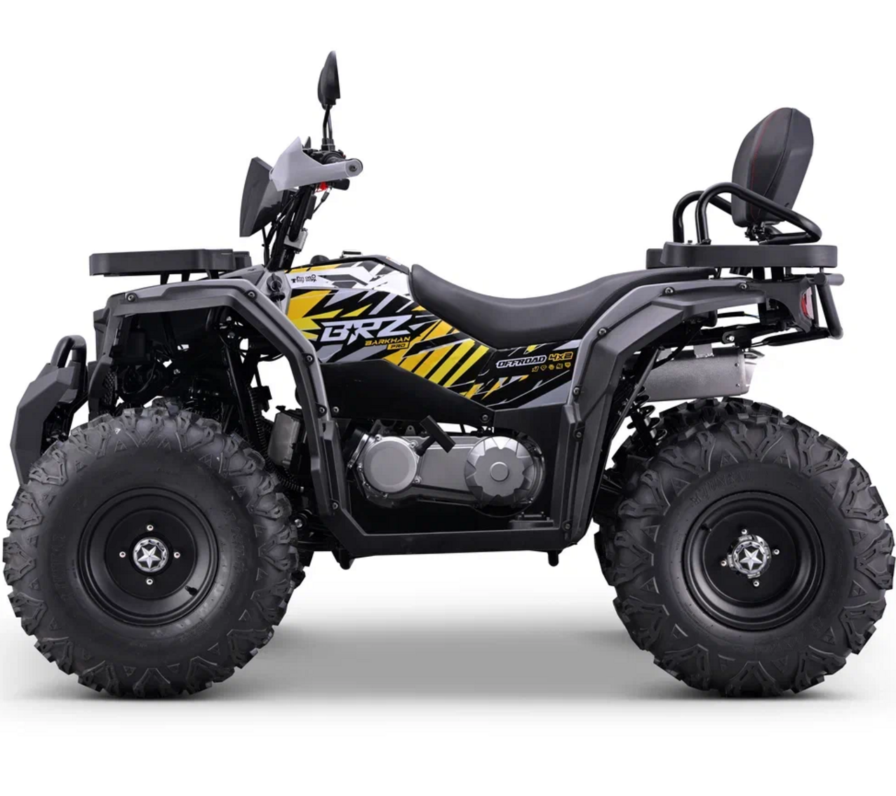 В базовой версии BRZ Barkhan 200 имеет зеркала, защиту рук, мощную светодиодную оптику, крепкие багажники спереди и сзади, кенгурятник, LCD-приборная панель, страховочная чека, фаркоп и многое другое. Мотор квадроцикла BRZ Barkhan 200 оснащен масленым радиатором и баланс.валом. Barkhan в базе оснащен дисковыми тормозами спереди и сзади. Чтобы вы могли завести квадроцикл даже в самый непредвиденный случай BRZ Barkhan 200 оснащен помимо удобного электростартера, также и кик-стартером.