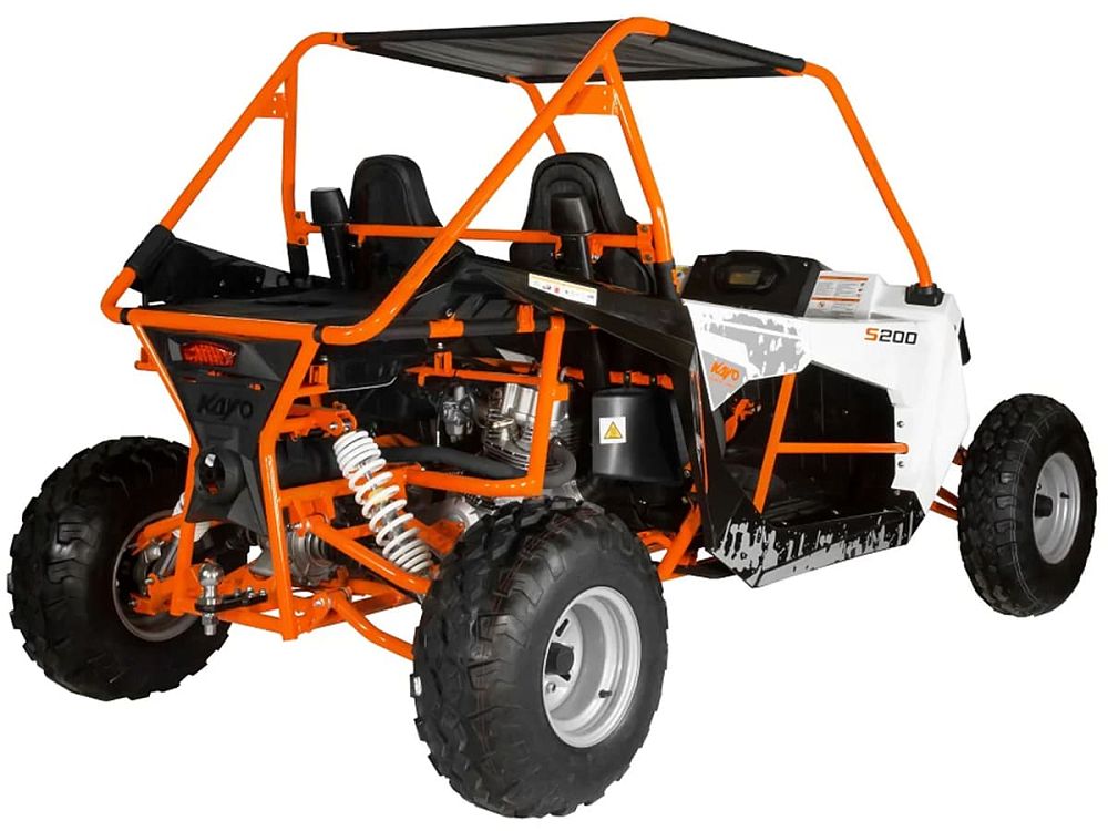 Большие колёса диаметром 10 дюймов обуты в покрышки с развитым рисунком протектора и обеспечивают надёжное сцепление с грунтом. Размеры шин спереди AT22*7.0-10, сзади AT22*10-10. Багги легко преодолеет склоны до 25˚ и обеспечит вам возможность исследовать места, недоступные для обычного транспорта.