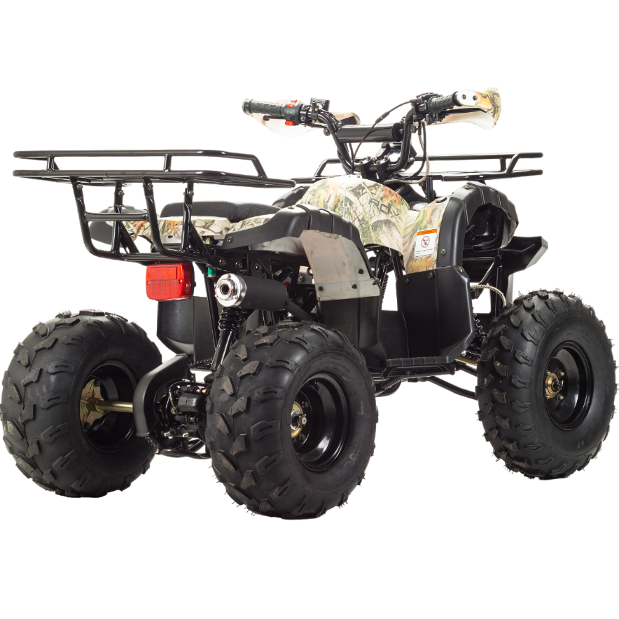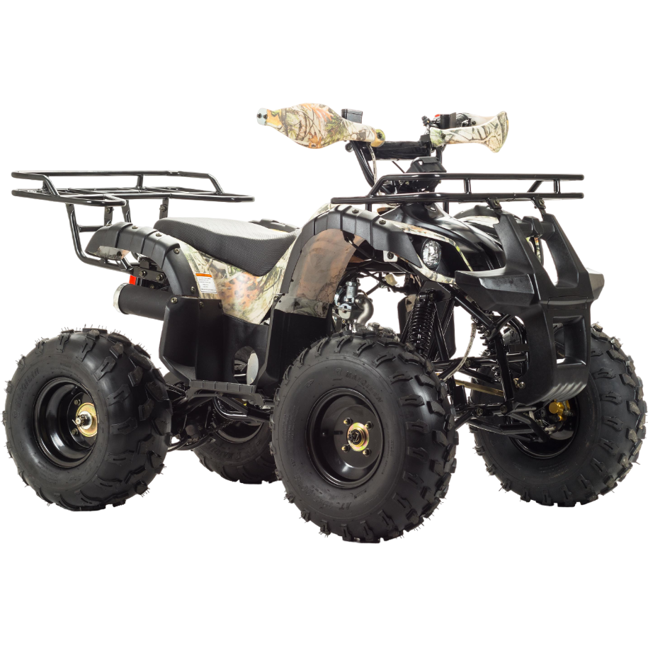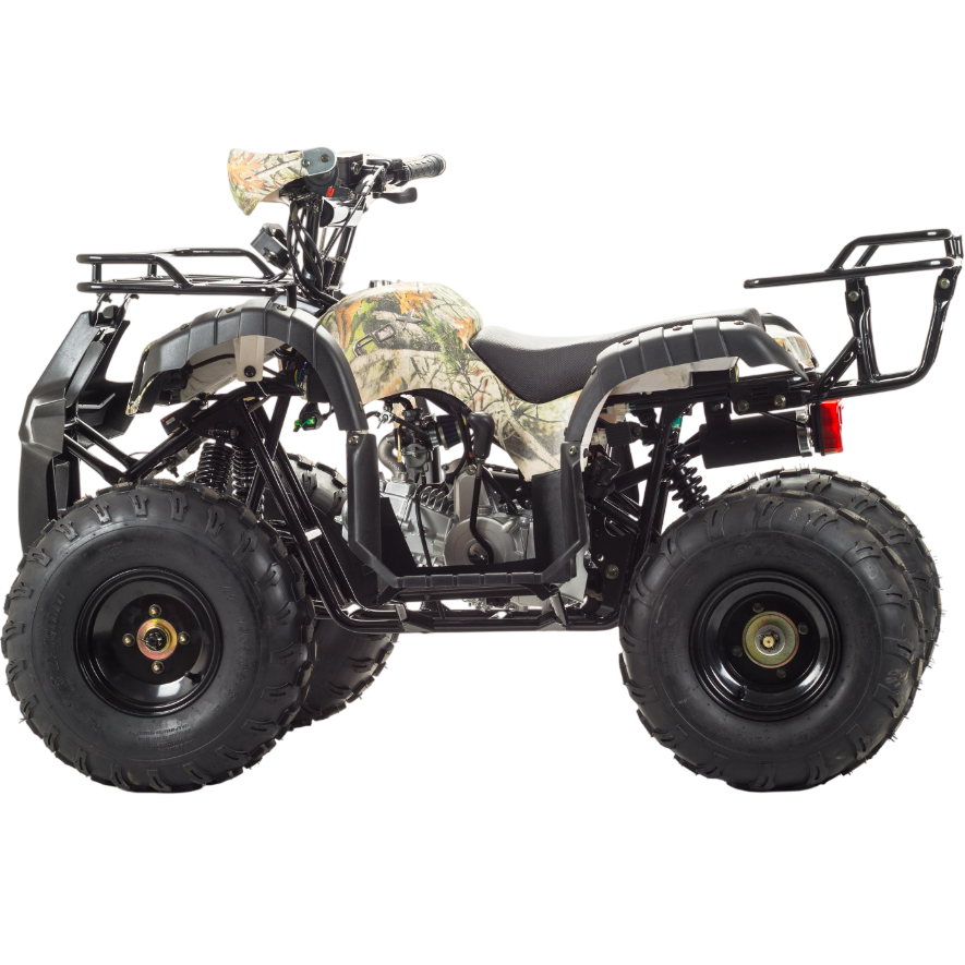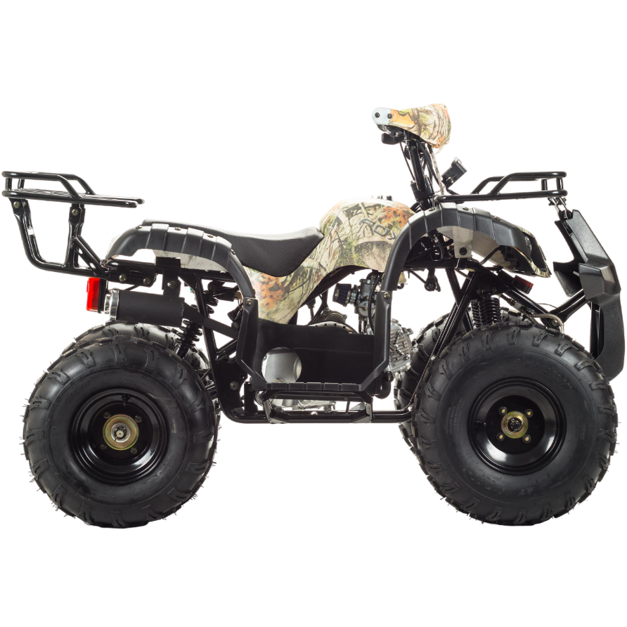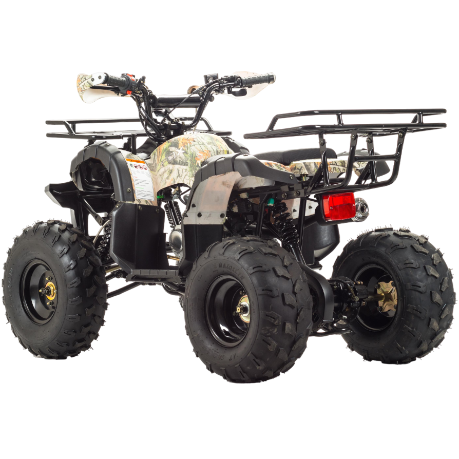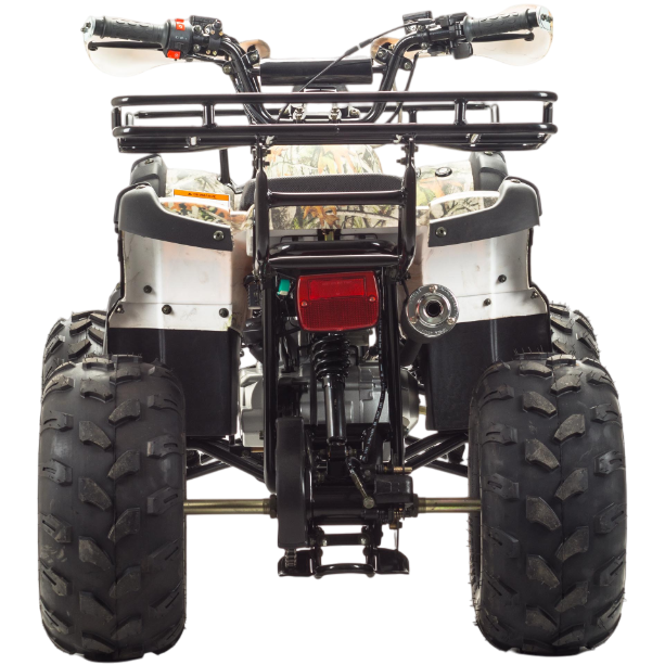 Передние фары, которые присутствуют, способствуют исключительной видимости при передвижение в сумеречное и ночное время. На этом квадроцикле ваш ребёнок с комфортом и лёгкостью сможет покорить не только обычные дороги (не общего пользования), но и бездорожье. У FOX 125 отличная управляемость в любых условиях эксплуатации, благодаря грамотной настройке подвески. Данный квадроцикл оснащен автоматической коробкой передач с реверсом, который установлен на усиленной раме, что дает уверенность в прочности конструкции. Благодаря наличию переднего и заднего багажников, юный райдер сможет перевозить необходимые, в своём путешествии, вещи.