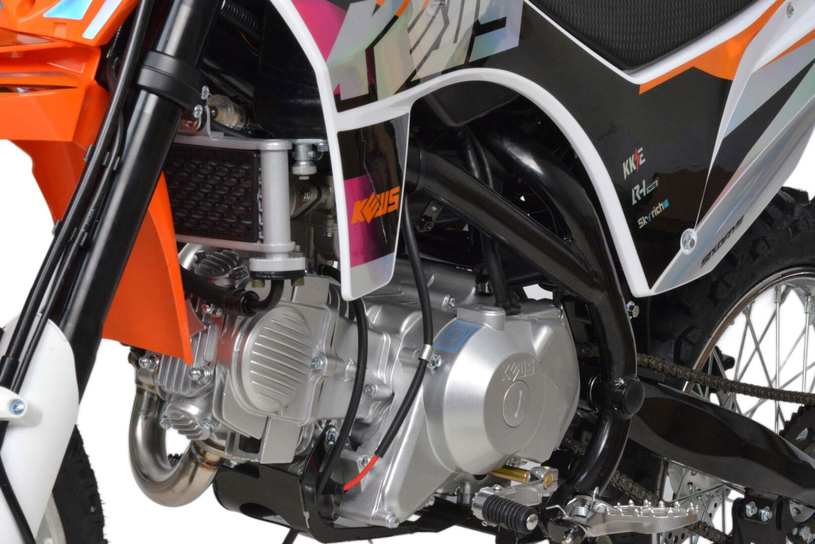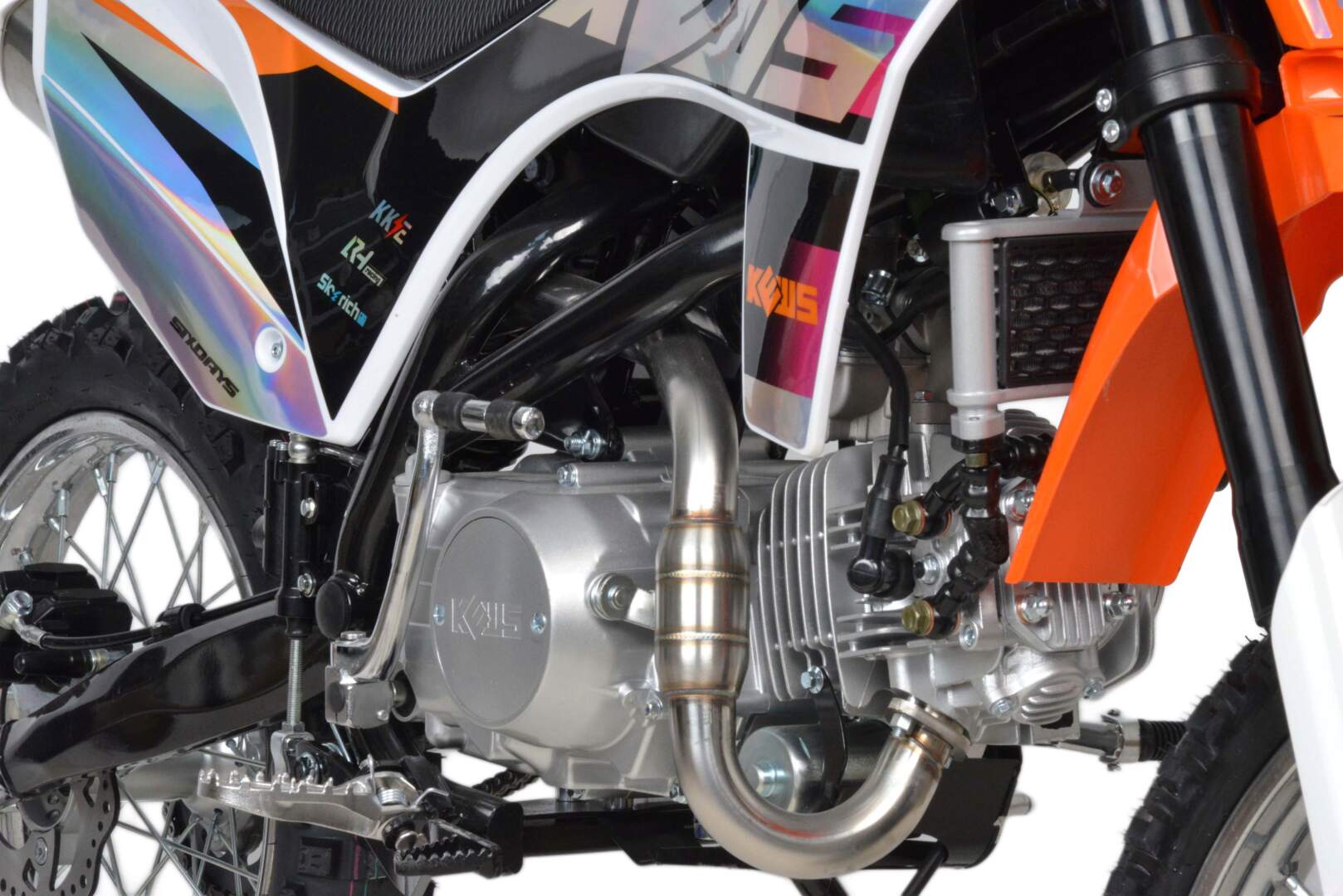 Питбайк оснащён карбюратором NIBBIPE22 и одноцилиндровым четырёхтактным двигателем с воздушно-масляным охлаждением. Надёжный мотор 1P56FMJ мощностью 11 л. с. и объемом 140 см3