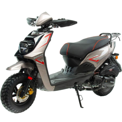 - На скутере установлен бензиновый одноцилиндровый четырехтактный двигатель 157 QMJ, мощностью 10 л. с. и рабочим объемом 150 см3. Этот четырехтактный сильный агрегат очень достойного качества, показывает большую надежность, тяговитость и экологичность;
